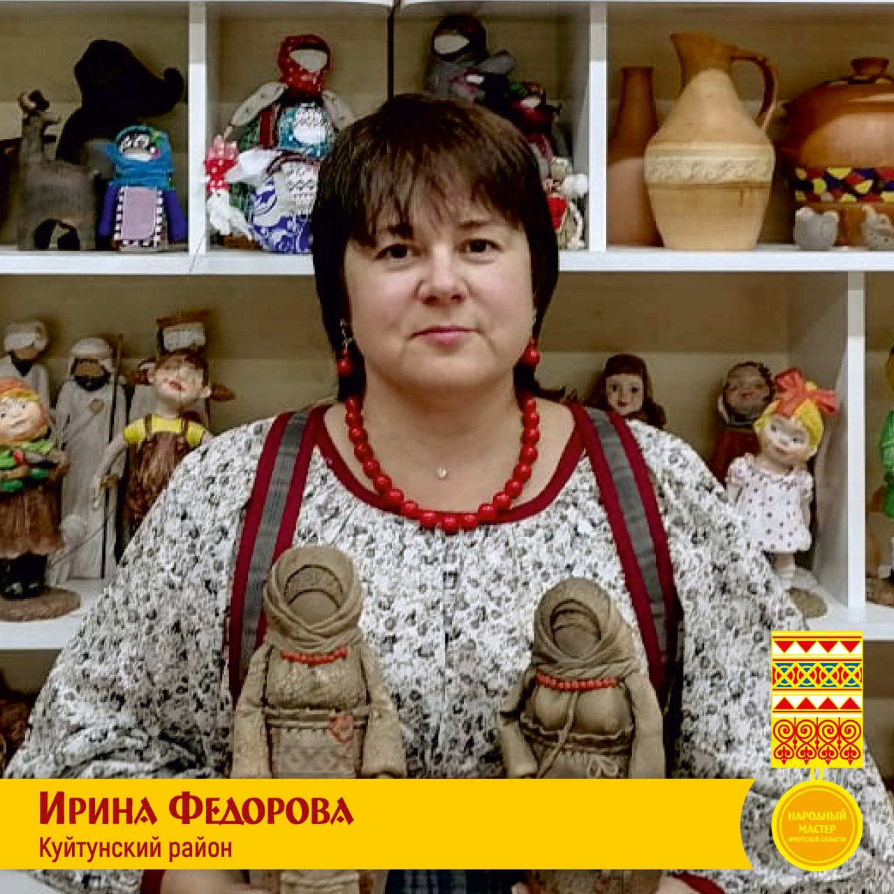 Ирина Федорова родилась в Красноярске в 1974 году, в 1995 году окончила Красноярскую Школу закройщиков-модельеров с красным дипломом. Два года работала мастером производственного обучения в этой же школе. В 1997 году переехала в с. Карымск Куйтунского района, где 6 лет работала мастером производственного обучения в филиале Профессионального училища. В 2005 году была принята на работу воспитателем в ОГКУСО «Центр помощи детям, оставшихся без попечения родителей, Куйтунского района». Успешно прошла профессиональную переподготовку в Иркутском институте повышения квалификации работников образования, с 2010 года работает инструктором по труду в этом же Центре. На протяжении 12 лет Ирина Федоровна тесно взаимодействует с Карымским социально-культурным центром и с отделом культуры Куйтунского района. Ирина активно участвует во всех социально значимых мероприятиях, проводимых как в Карымском сельском поселении, так во всех районных конкурсах и фестивалях.