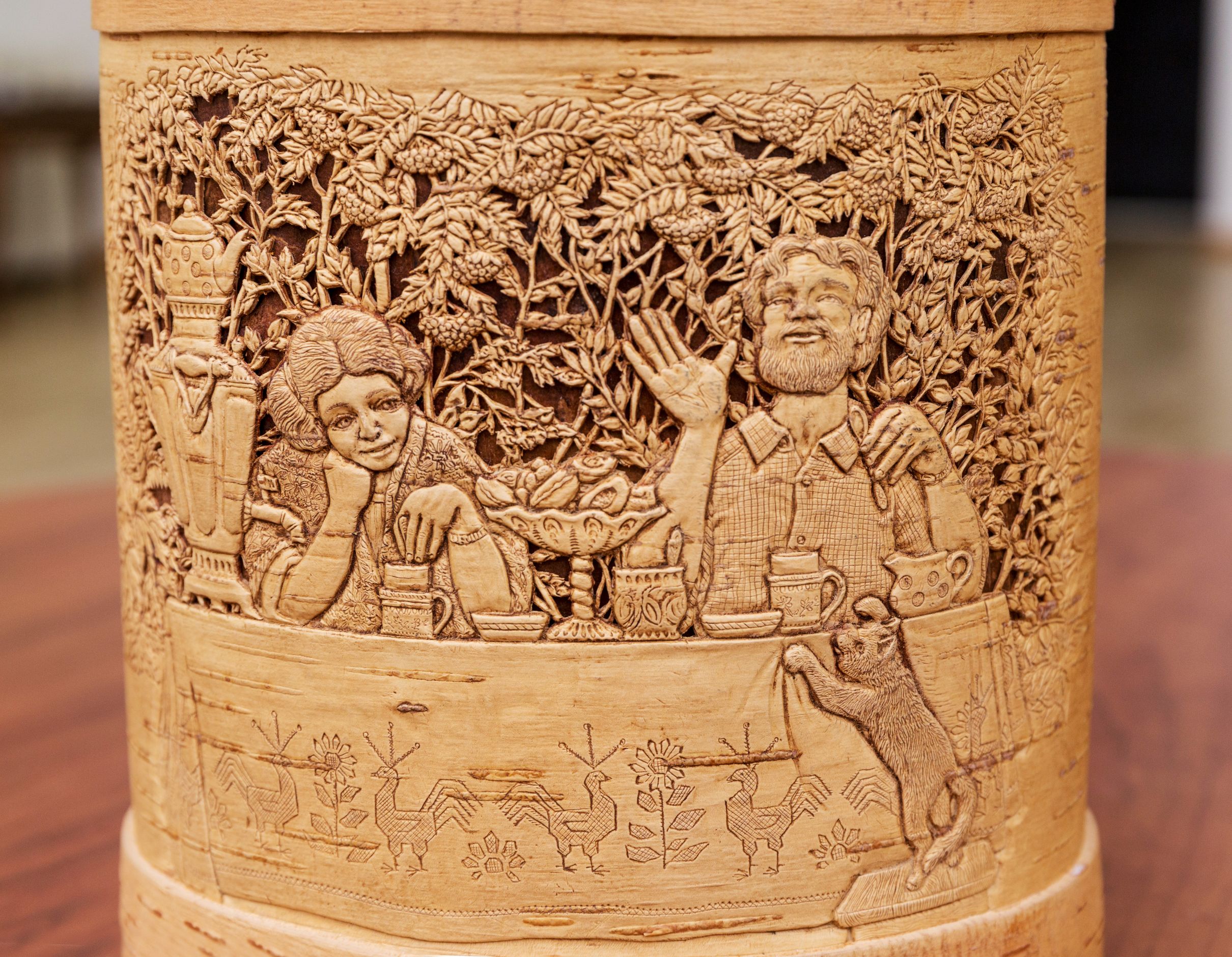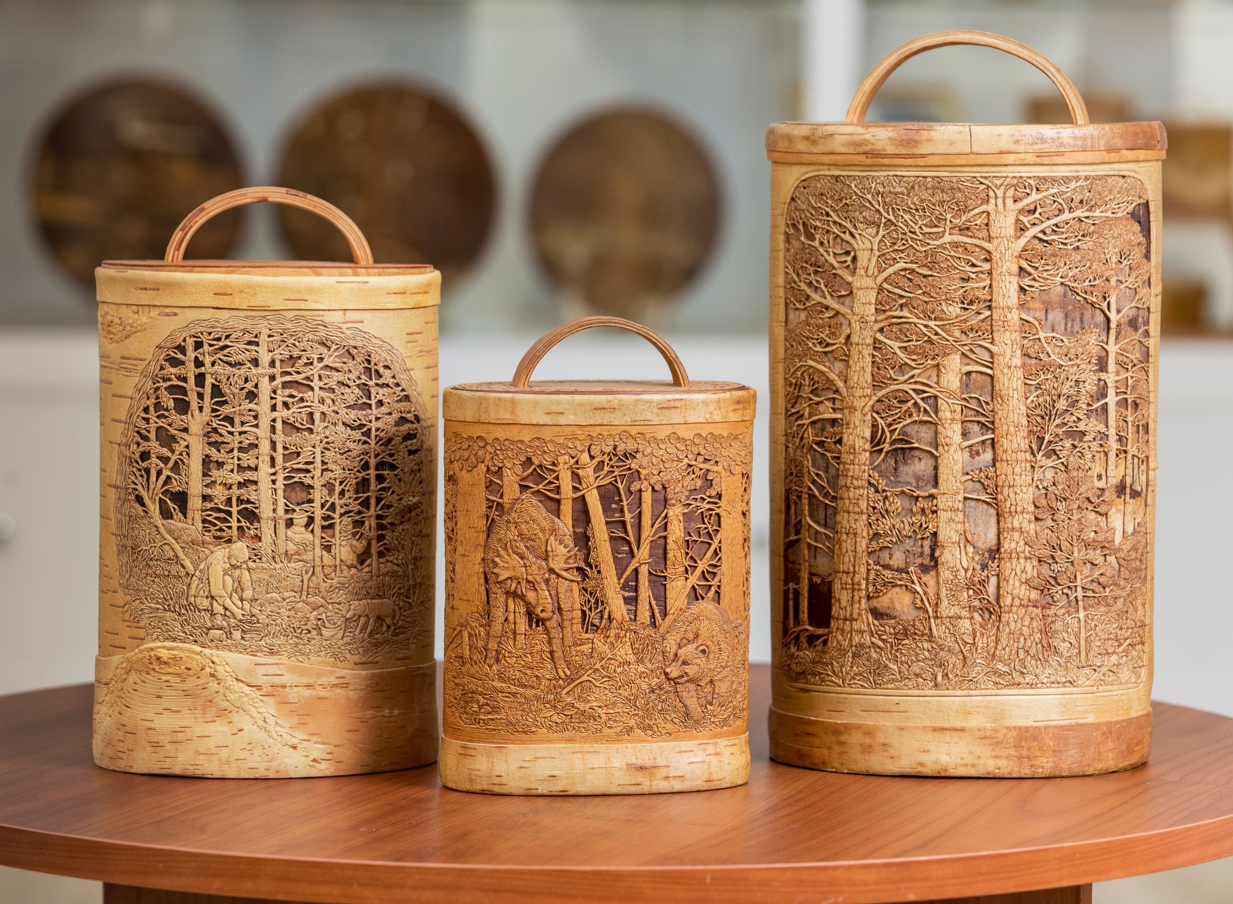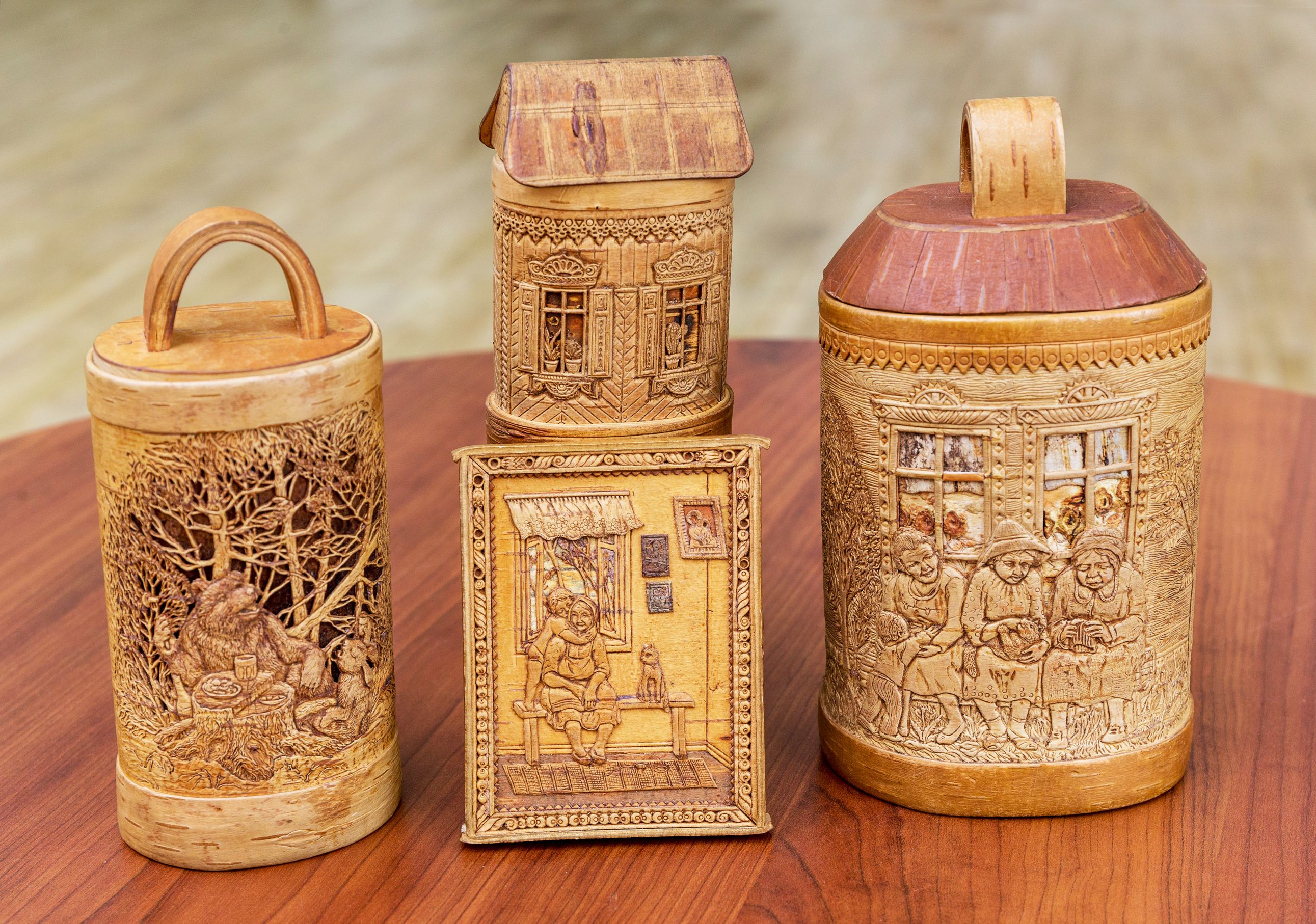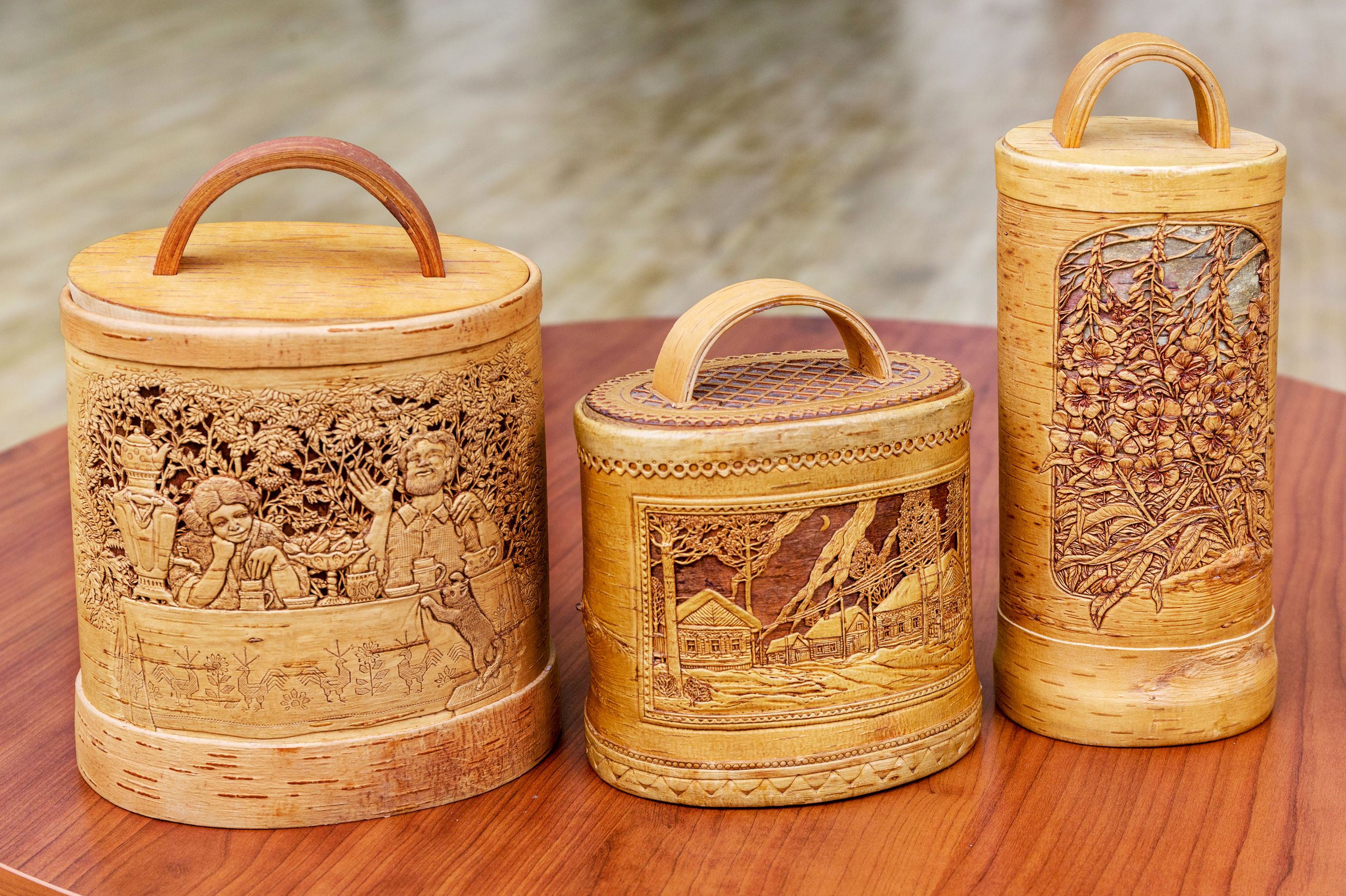 При художественной обработке берестяных туесов и других изделий Татьяна Васильевна, опираясь на традиционные техники работы с берестой (плетение, работу с пластом, тиснение, резьбу, шитье), использует свою, годами наработанную технологию, добиваясь тончайшей проработки деталей и выразительности рисунка с помощью иглы.