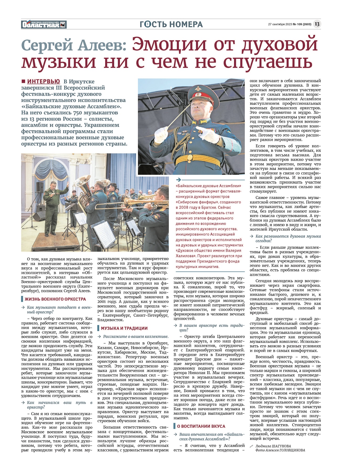 Ссылка на статью: https://www.ogirk.ru/2023/09/27/sergej-aleev-jemocii-ot-duhovoj-muzyki-ni-s-chem-ne-sputaesh/