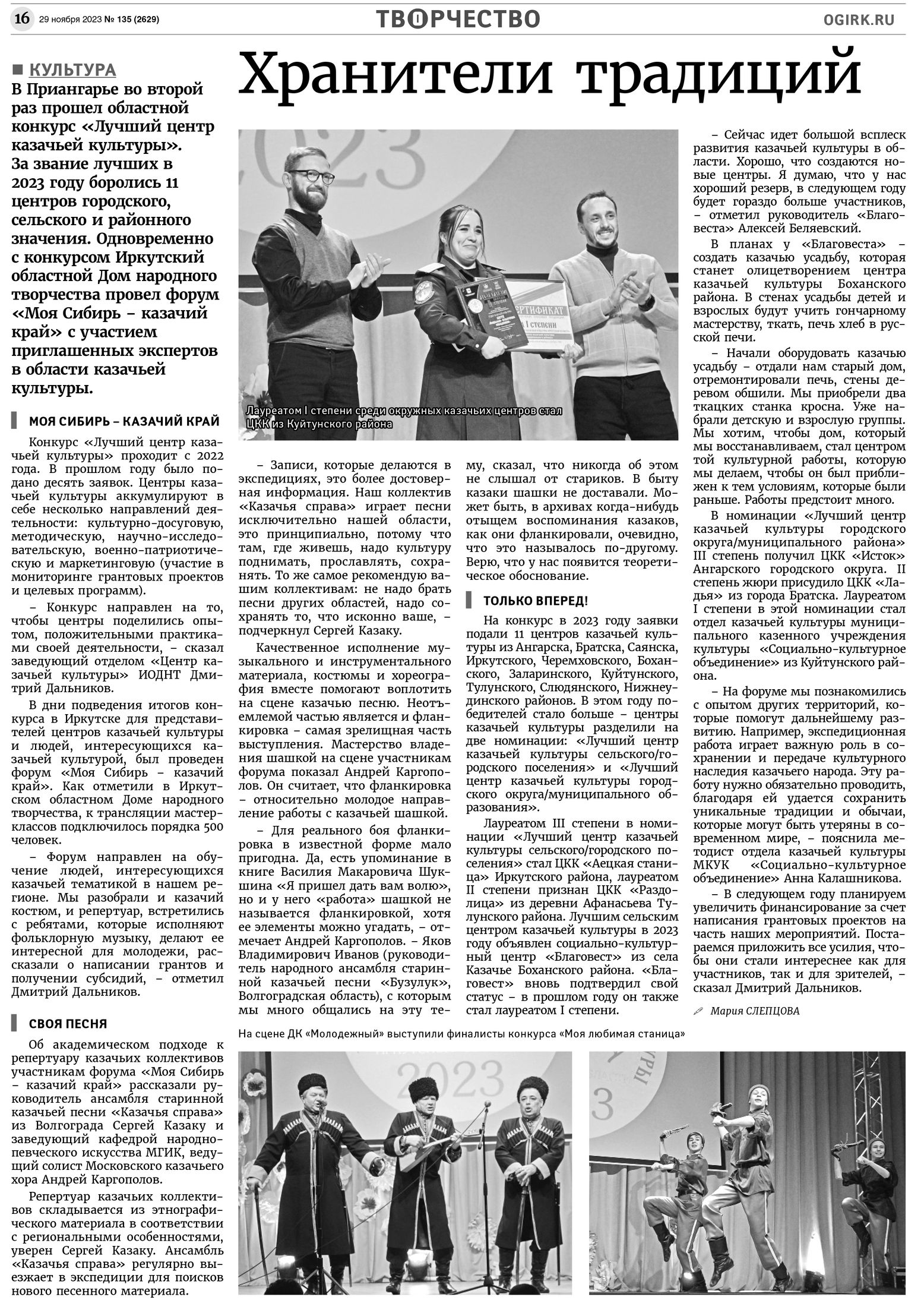 Автор Мария Слепцова. Ссылка на материал: https://www.ogirk.ru/2023/11/29/hraniteli-tradicij/