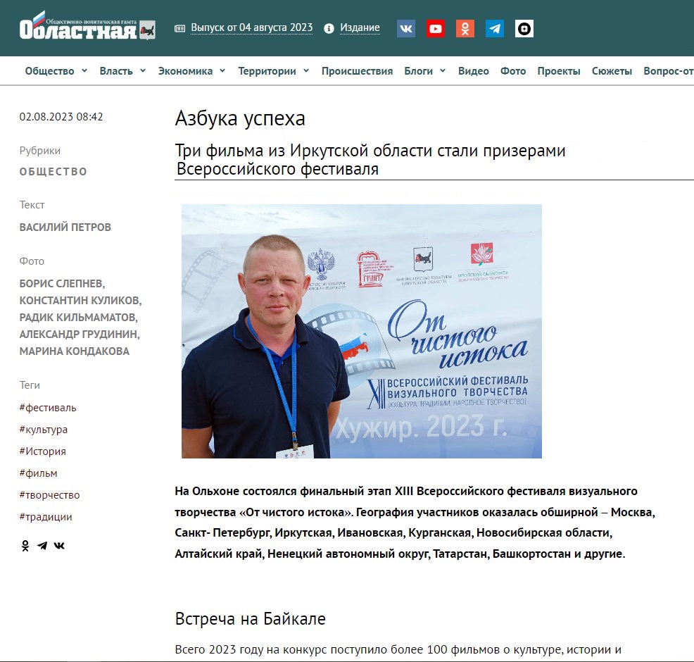 Подробнее: Азбука успеха. Три фильма из Иркутской области стали призерами Всероссийского фестиваля