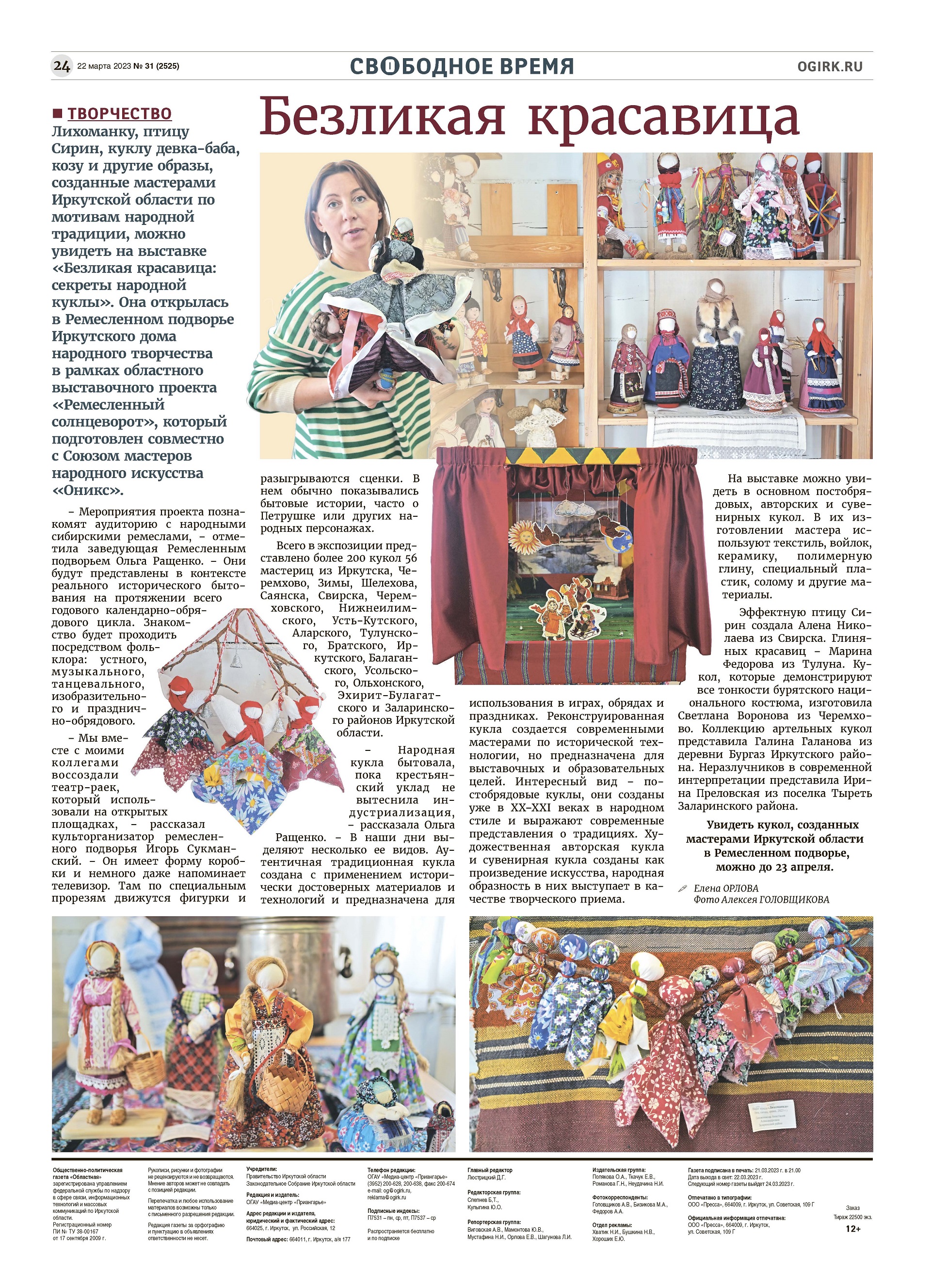 Подробнее: "Областная газета" - о выставке "Безликая красавица: секреты народной куклы"