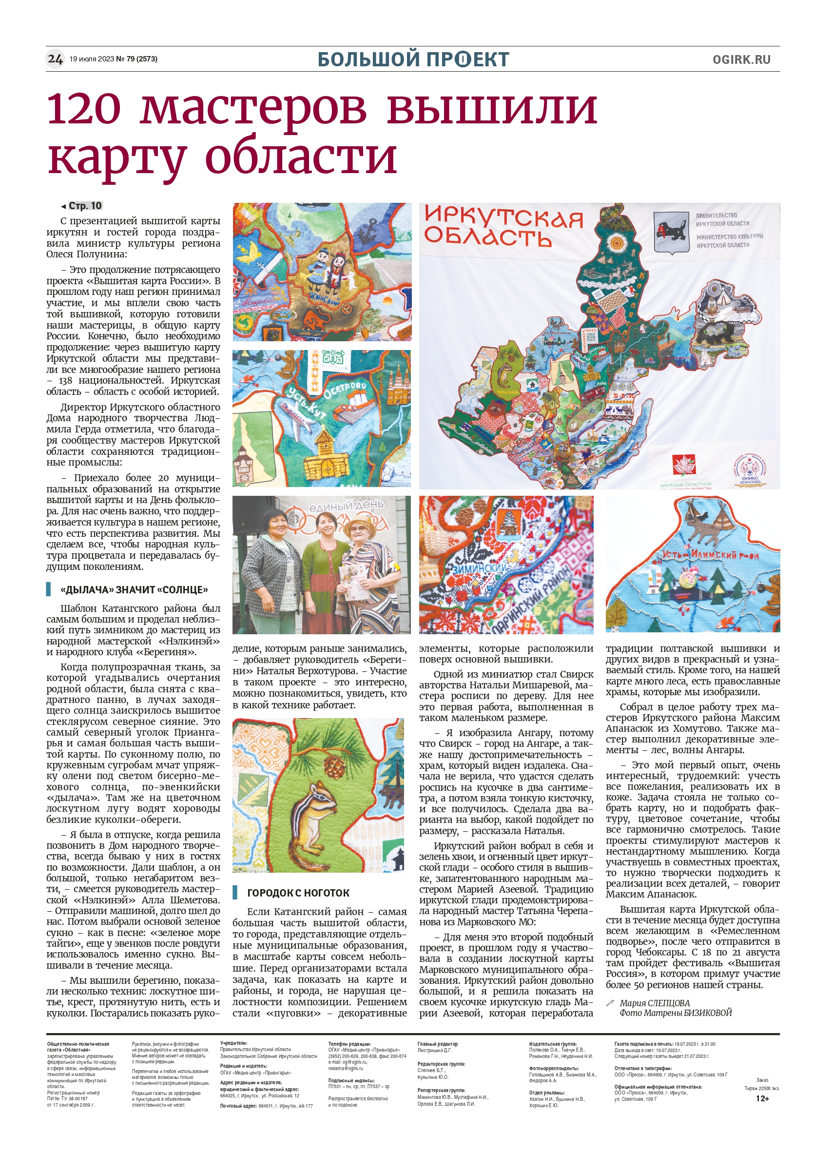 Ссылка на статью: https://www.ogirk.ru/2023/07/19/120-masterov-vyshili-kartu-oblasti/