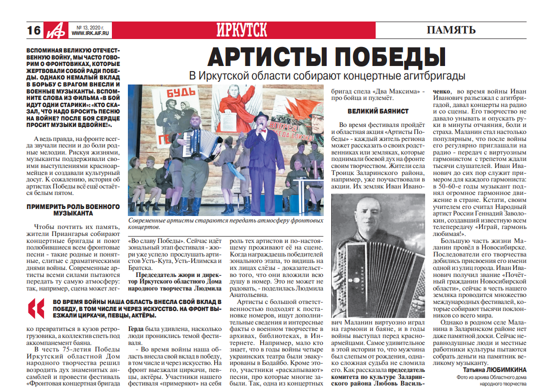 Иркутская земля полна талантами! Так много людей, пишущих стихи и музыку о родном крае, людях, что в нем живут, о любви к природе. Так, в 2011 году вышел сборник авторских песен «С любовью к Иркутску!», объединивший самодеятельных композиторов Иркутской области. Эта интереснейшая работа продолжается, и в 2015 году состоялся областной конкурс самодеятельных композиторов-песенников «Мелодии Приангарья», посвященный 70-летию Победы в Великой Отечественной войне 1941-1945 гг.