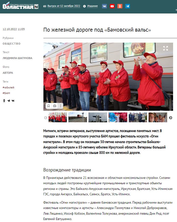 Подробнее: Газета "Областная": По железной дороге под «Бамовский вальс»