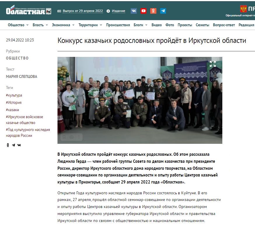 Подробнее: Областная газета: "Конкурс казачьих родословных пройдёт в Иркутской области"