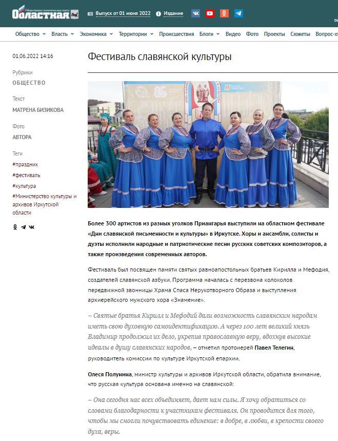 Подробнее: "Фестиваль славянской культуры". Репортаж с празднования Дня славянской письменности