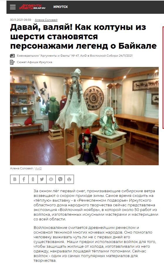 Статья Алёны Соловей в еженедельние "АиФ в Восточной Сибири"