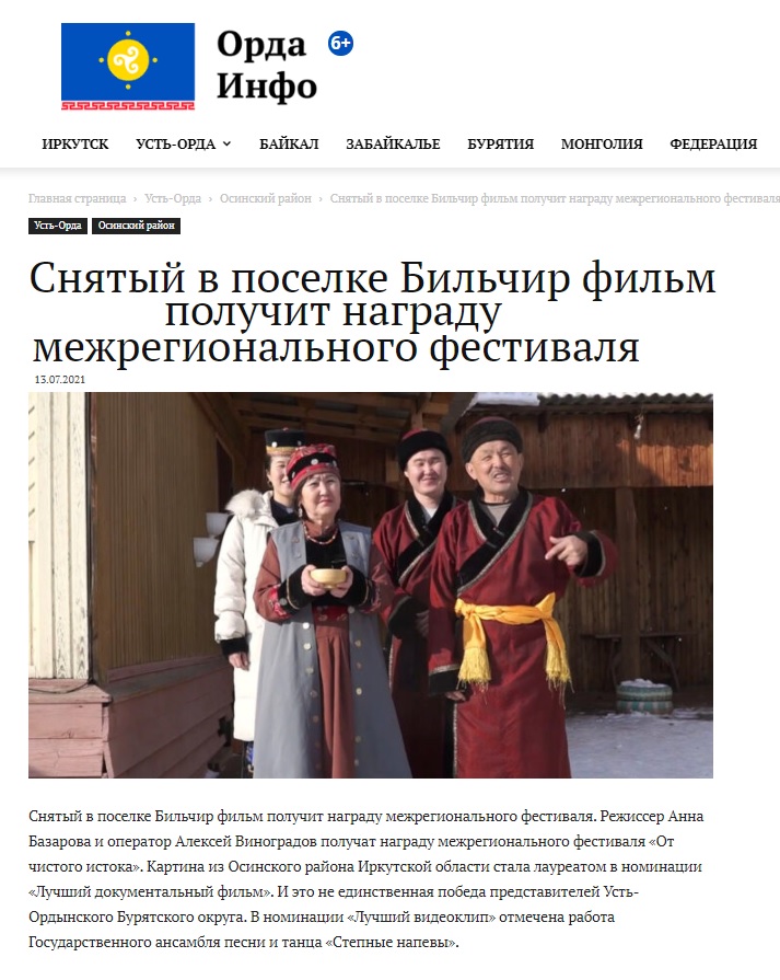 Подробнее: Орда Инфо: "Снятый в поселке Бильчир фильм получит награду межрегионального фестиваля"