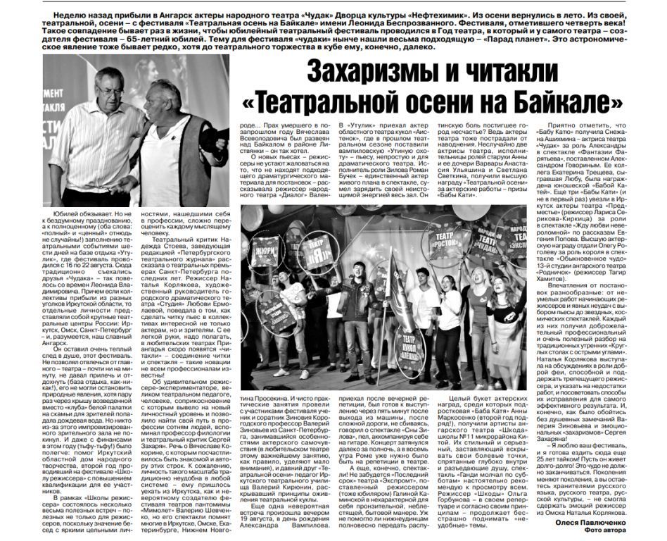 Пресса МедиаВидеоФотоАудиоПрессаИнформационные проекты Статья о фестивале "Театральная осень на Байкале" в ангарской газете "Свеча" Подробности Категория: Пресса о нас Опубликовано: 03 сентября 2019 Создано: 03 сентября 2019 Подробнее: Статья о фестивале "Театральная осень на Байкале" в ангарской газете "Свеча" Статья о выставке «АХИ БУГА – ВСЕЛЕННАЯ ЖЕНЩИН» в газете "Областная" Подробности Категория: Пресса о нас Опубликовано: 28 августа 2019 Создано: 28 августа 2019 Подробнее: Статья о выставке «АХИ БУГА – ВСЕЛЕННАЯ ЖЕНЩИН» в газете "Областная" Статья "Этот праздник нужен народу. Кого объединил заларинский хоровод?" в газете "Областная". М. Бизикова Подробности Категория: Пресса о нас Опубликовано: 10 июля 2019 Создано: 10 июля 2019 Подробнее: Статья "Этот праздник нужен народу. Кого объединил заларинский хоровод?" в газете "Областная". М.... Статья о выставке «АХИ БУГА – ВСЕЛЕННАЯ ЖЕНЩИН» в газете "Аргументы и факты Восточной Сибири" Подробности Категория: Пресса о нас Опубликовано: 28 августа 2019 Создано: 28 августа 2019 Подробнее: Статья о выставке «АХИ БУГА – ВСЕЛЕННАЯ ЖЕНЩИН» в газете "Аргументы и факты Восточной Сибири" Журнал "Байкальский свадебный салон" №78 (3), лето 2019 г. Подробности Категория: Пресса о нас Опубликовано: 08 июля 2019 Создано: 08 июля 2019 Подробнее: Журнал "Байкальский свадебный салон" №78 (3), лето 2019 г. Журнал Иркутская область. Siberia №24 О фестивале "Мы разные. Мы вместе!" в газете "Аргументы и факты" Статья о фестивале "Мы разные. Мы вместе!" в газете "Копейка" Статья о празднике "Троица" в газете "Областная" Страница 17 из 53 В начало Назад 12 13 14 15 16 17 18 19 20 21 Вперёд В конец План работы Декабрь 2025 Пн Вт Ср Чт Пт Сб Вс 1 2 3 4 5 6 7 8 9 10 11 12 13 14 15 16 17 18 19 20 21 22 23 24 25 26 27 28 29 30 31 Все события Информационные проекты Все материалы Другие проекты Все проекты Обратная связь Неверный ввод Неверный ввод Неверный ввод Неверный ввод Отправить Лента не найдена Решаем вместе Сложности с получением «Пушкинской карты» или приобретением билетов? Знаете, как улучшить работу учреждений культуры? Напишите — решим! Написать