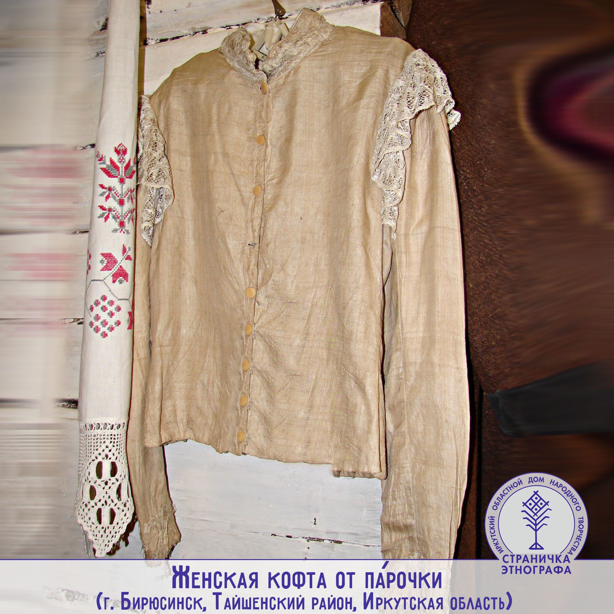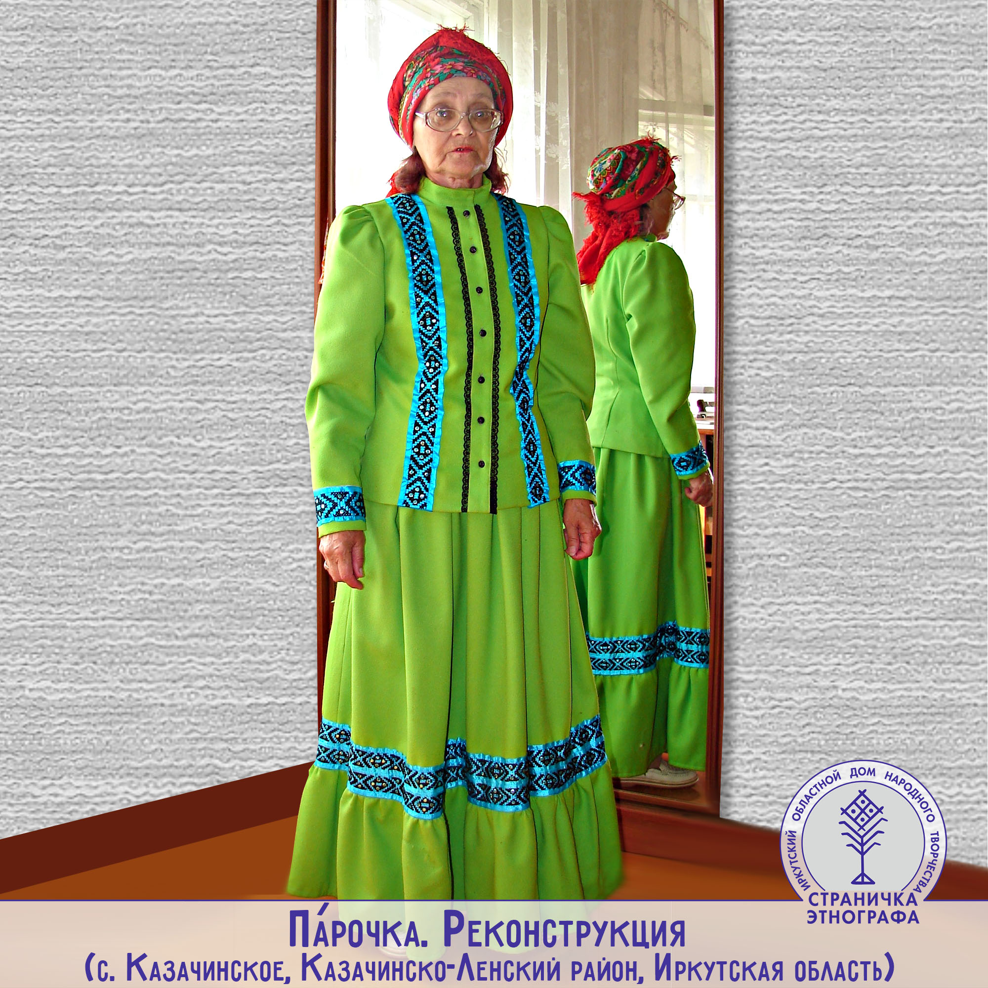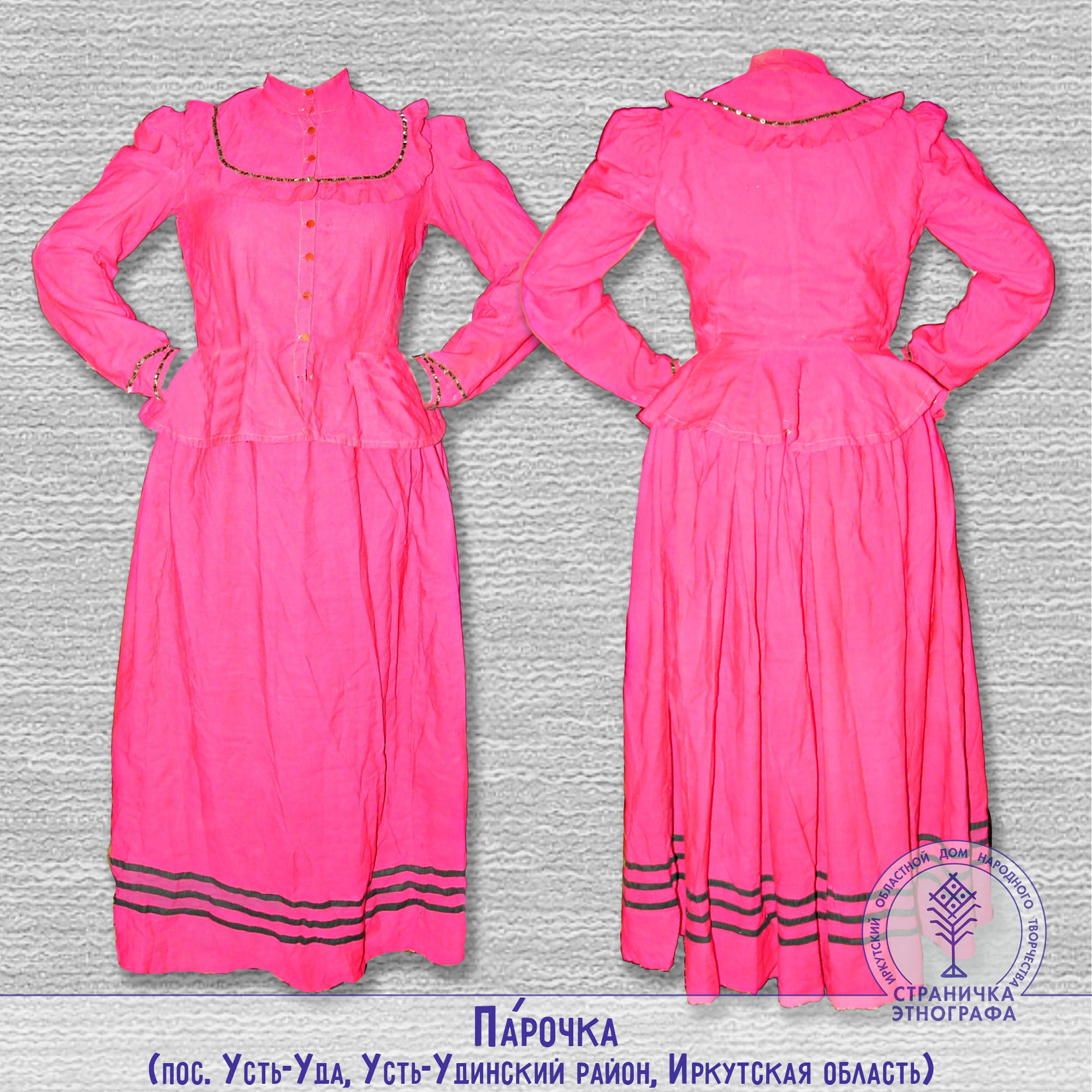 Па́рочка – комплекс женской одежды из кофты и юбки, сшитых из одной ткани. Парочка или «городской костюм крестьянки» к началу ХХ века бытовал на всей территории России. В Иркутской области деревенские жительницы в середине ХХ века повсеместно носили парочки, па́ры или юбки с кофтами.