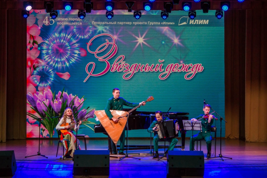 В честь 45-летия Усть-Илимска при поддержке Группы «Илим» в рамках проекта «Звездный дождь» 13 апреля на сцене ГДК «Дружбу» прошел концерт.