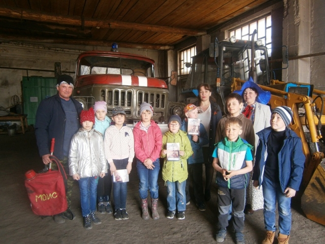 Завершением мероприятия стала экскурсия в пожарный бокс с. Моисеевка. Рассказал о работе пожарной дружины Андрей Егупов, который в этот день находился на дежурстве. Из рассказа дежурного ребята узнали о том, сколько воды входит в пожарную машину, о том, что пожар можно затушить не только водой, но и огнетушителем, и что специальная одежда пожарного пропитана специальным составом, который при высокой температуре не дает загореться.