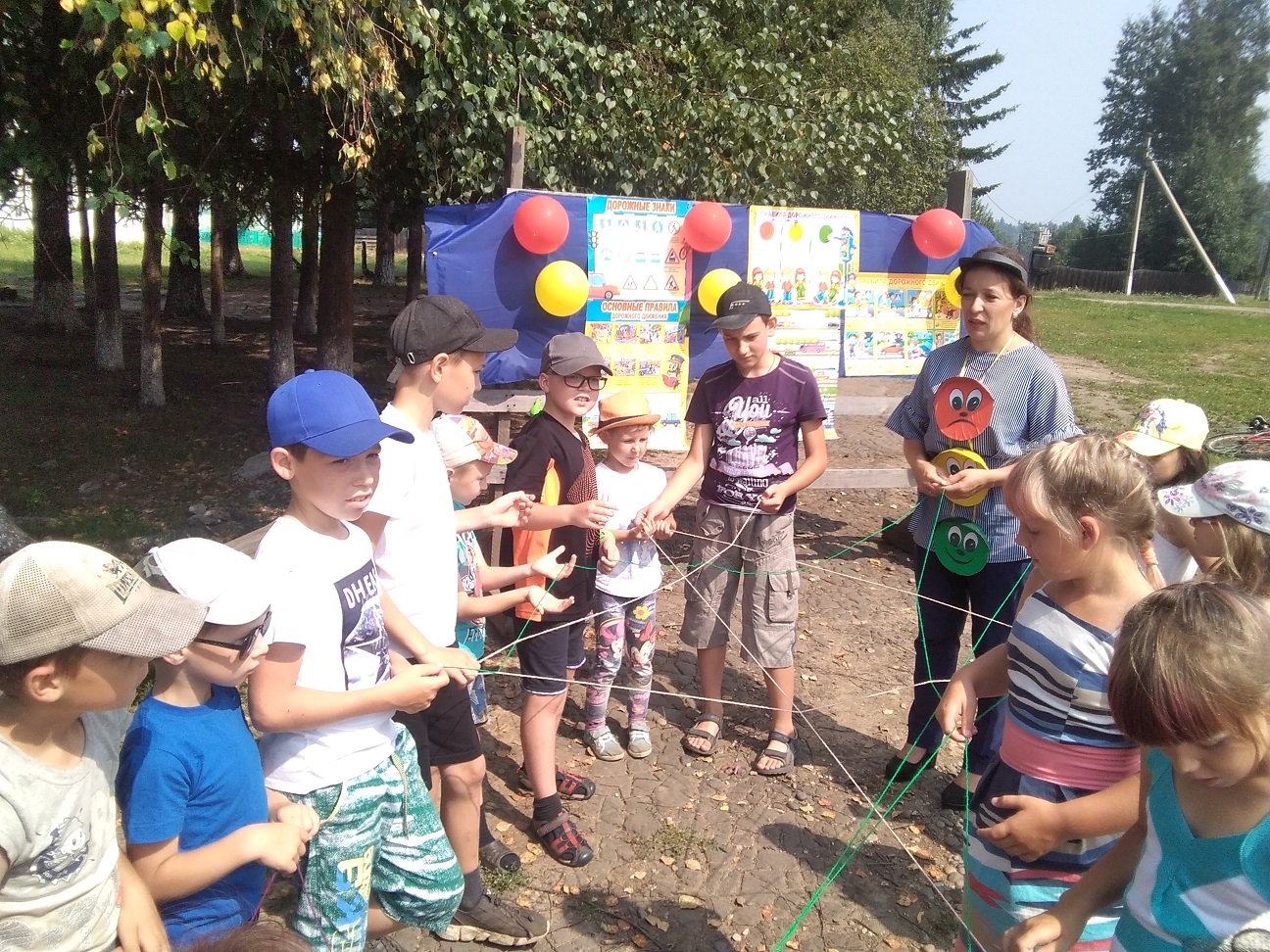 В гостях у ребят побывал Светофор, который рассказал детям о своем предназначении и о том, как важно знать правила дорожного движения. Участники программы дружно и правильно отгадывали загадки о видах транспорта, проверяли свои знания в викторине о транспорте сказочных героев, участвовали в веселых конкурсах и эстафетах. В занимательной игре «Паутина возможных бед» ребята бросали друг другу клубок ниток и называли возможные причины несчастных случаев на дороге.