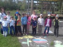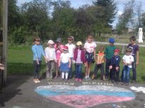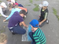 Ведущая программы (И. Ветрова) рассказала ребятам об истории флага нашей страны. Для участников мероприятия была подготовлена викторина о главных государственных символах России После детей ждал творческий конкурс, ребятам было предложено цветными мелками на асфальте изобразить рисунки на тему «Россия – Родина моя», с заданием дети справились на «отлично», площадка у летней сцены заиграла яркими красками.