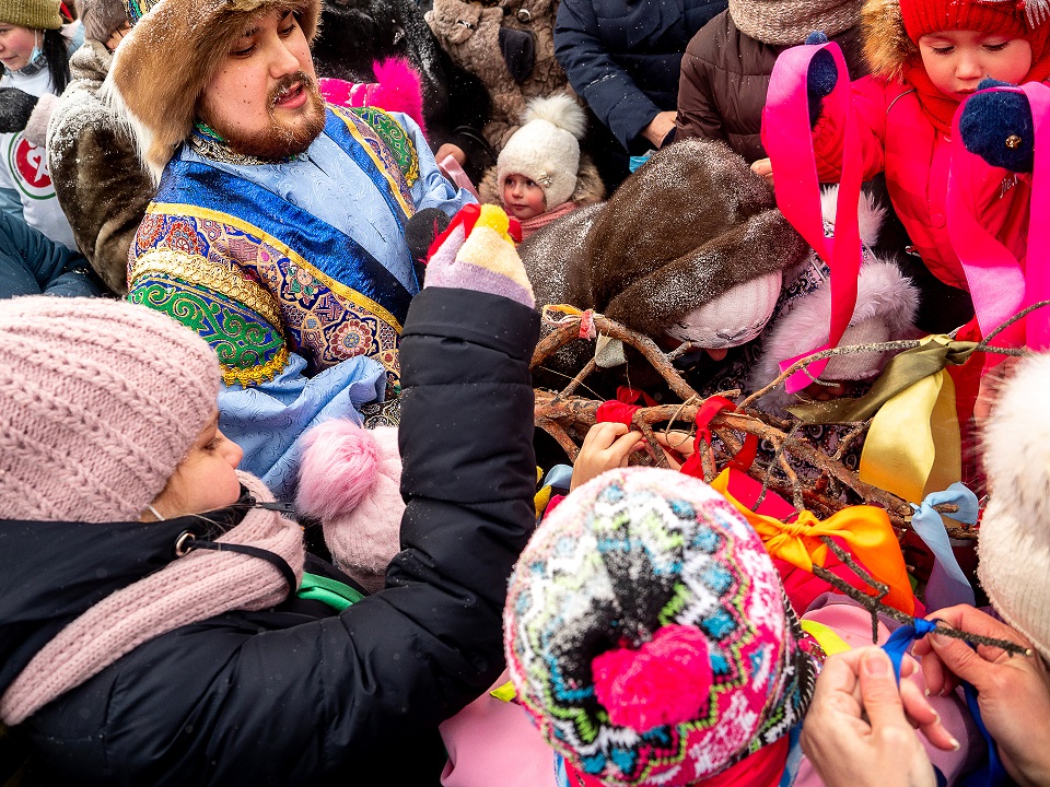 Сам праздник в этом году отмечался 12 февраля, но народное городское гуляние на площади у ДК им. И. И. Наймушина состоялось в выходной день – 13 числа.