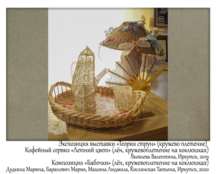 Выставка «Теория струн» из цикла областных тематических выставок декоративно-прикладного искусства, посвященных различным видам ремесел, призвана показать современное развитие кружевоплетения на территории Иркутской области. И хотя статистически кружевоплетение не относится к наиболее развитым в регионе – им занимаются лишь в нескольких муниципальных образованиях, на выставке представлены избранные работы кружевниц, сохраняющих традиции создания кружева в трех локальных центрах: Иркутске, Братске и Тулунском районе. Всем им удается сочетать исторически сложившиеся приемы работы с инновационным творческим подходом, позволяющим экспериментировать с формой, цветом и материалом.