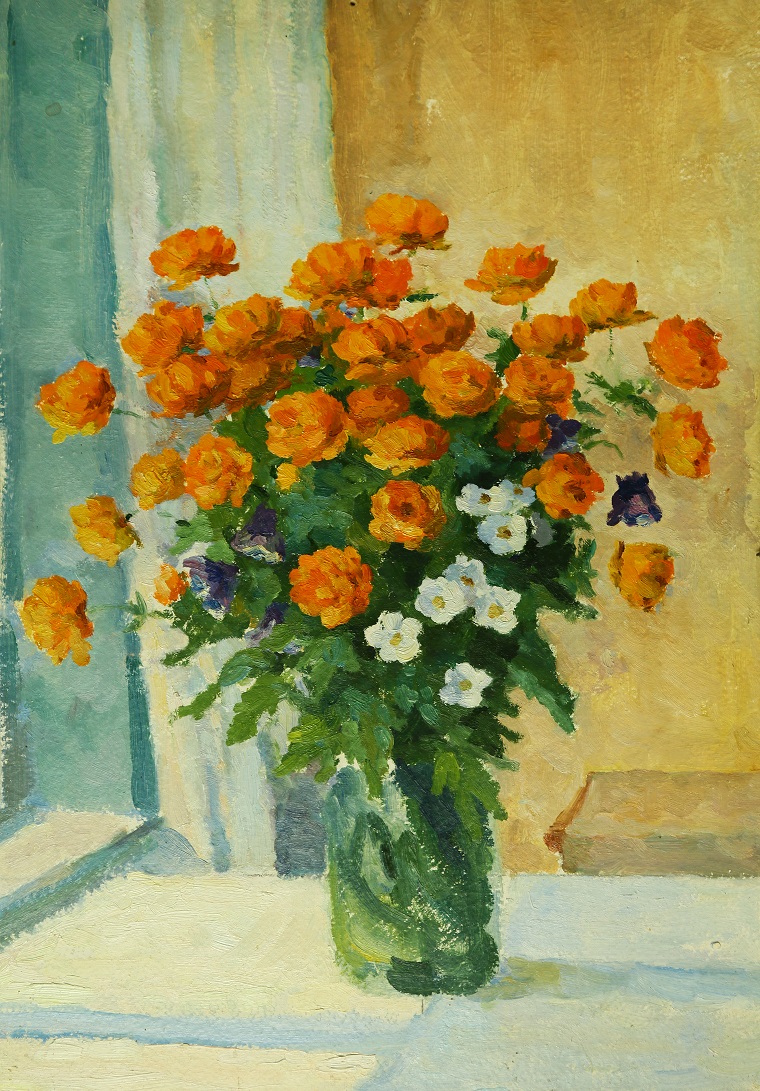 Ещё одна любовь художника – это натюрморты. «Сирень», «Жарки», «Багульник» – всё сибирское многоцветие «дышит» на его полотнах. Одна из любимых работ автора – это «Жарки», и многие просят эту работу в подарок.