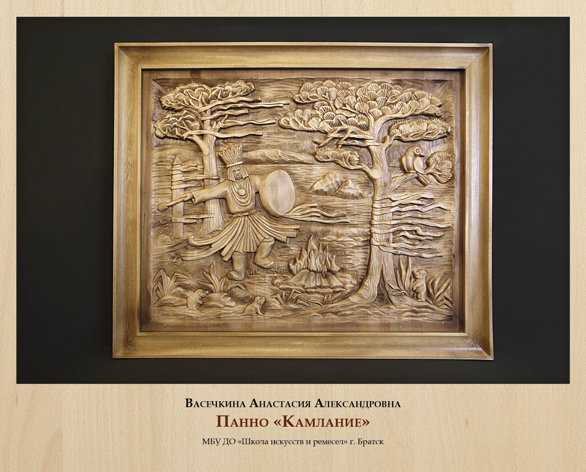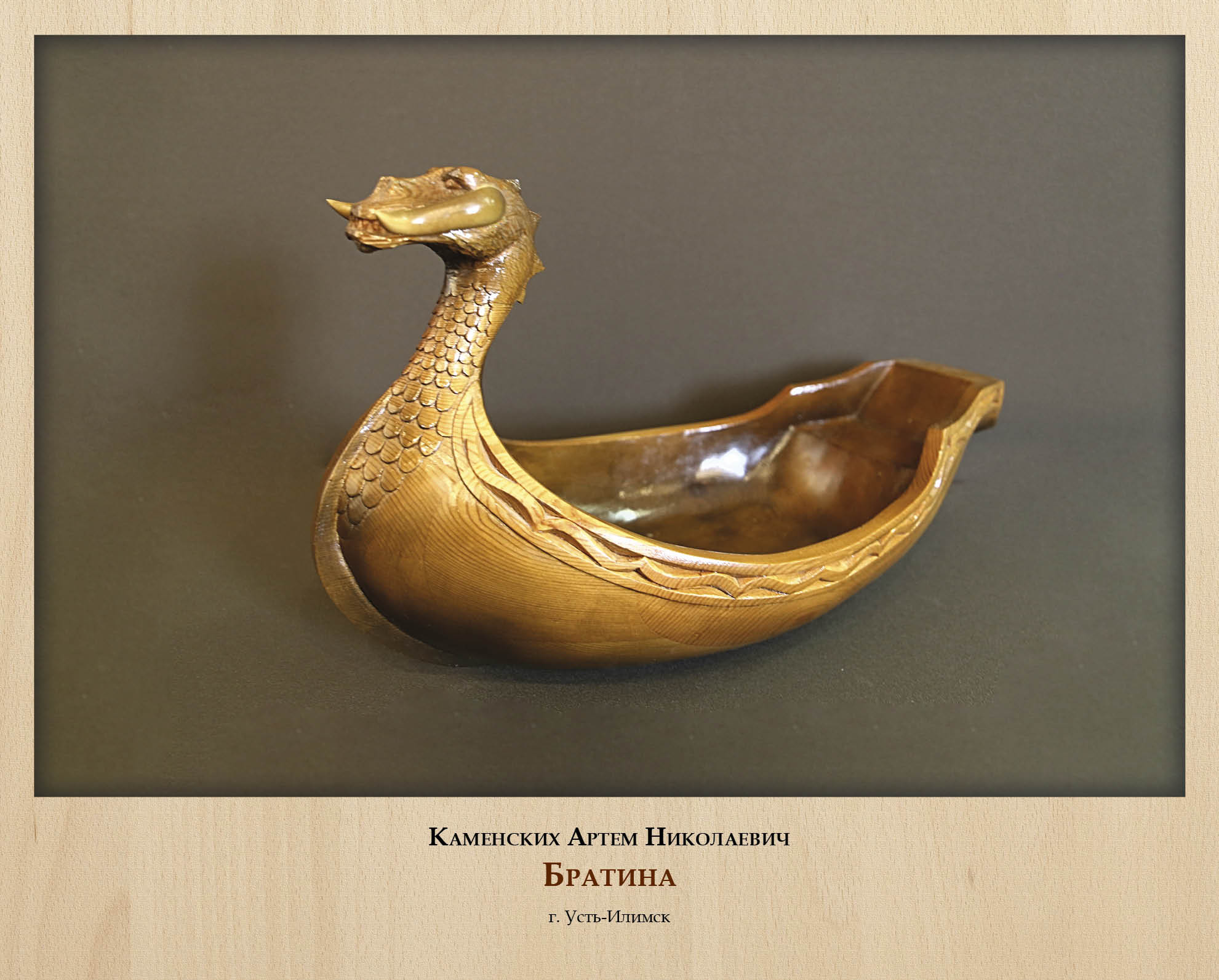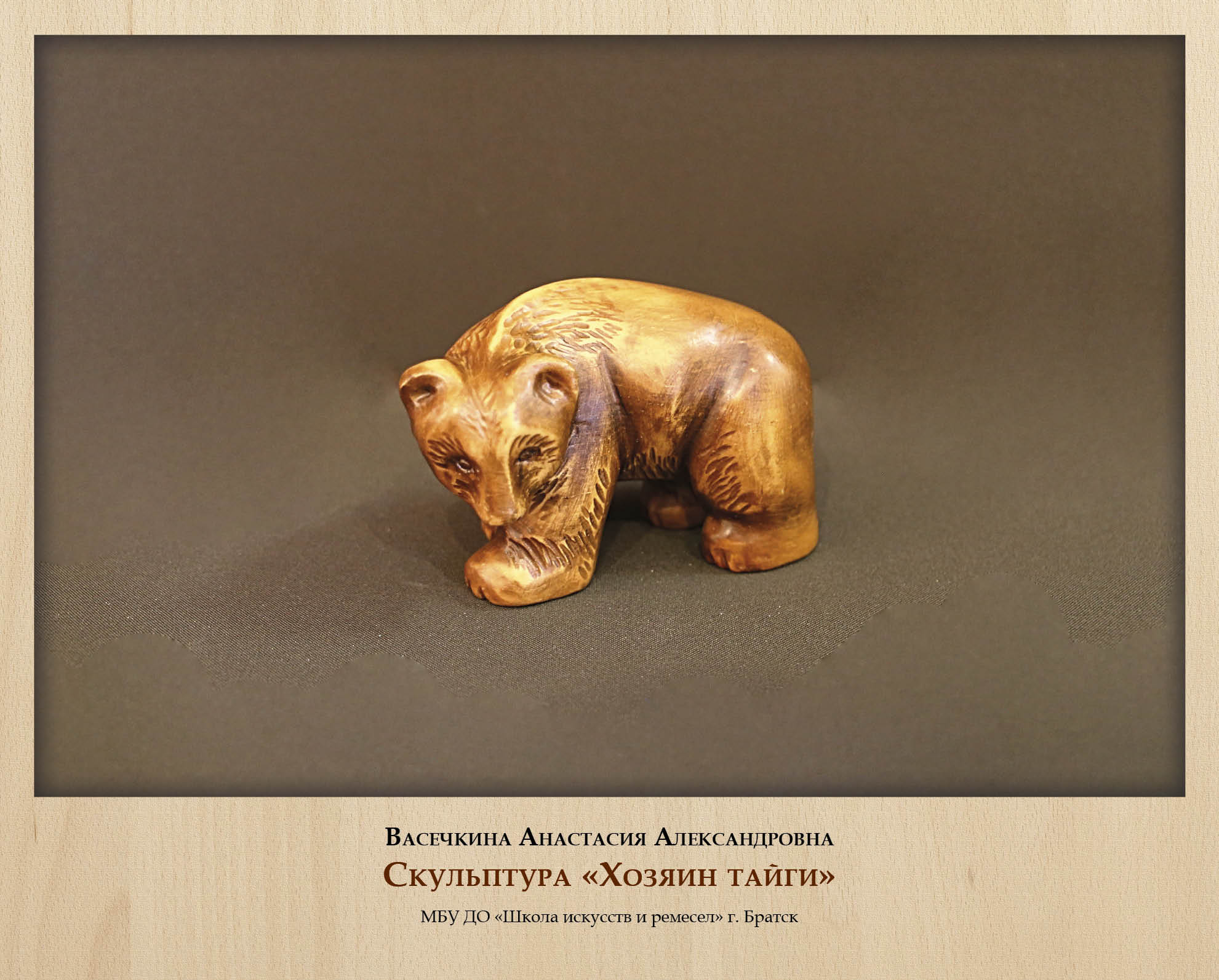 Анималистика в целом очень благодарная тема в художественной резьбе. Ей вдохновляются опытные мастера, в ней охотно пробуют силы подмастерья. А тема сибирской тайги по своей природной сути не может остаться без внимания резчиков. На выставке представлены несколько деревянных скульптур и панно, изображающих реальных животных и мифических существ, созданных разными авторами. Они показывают, насколько многообразной может быть резьба в умелых руках.