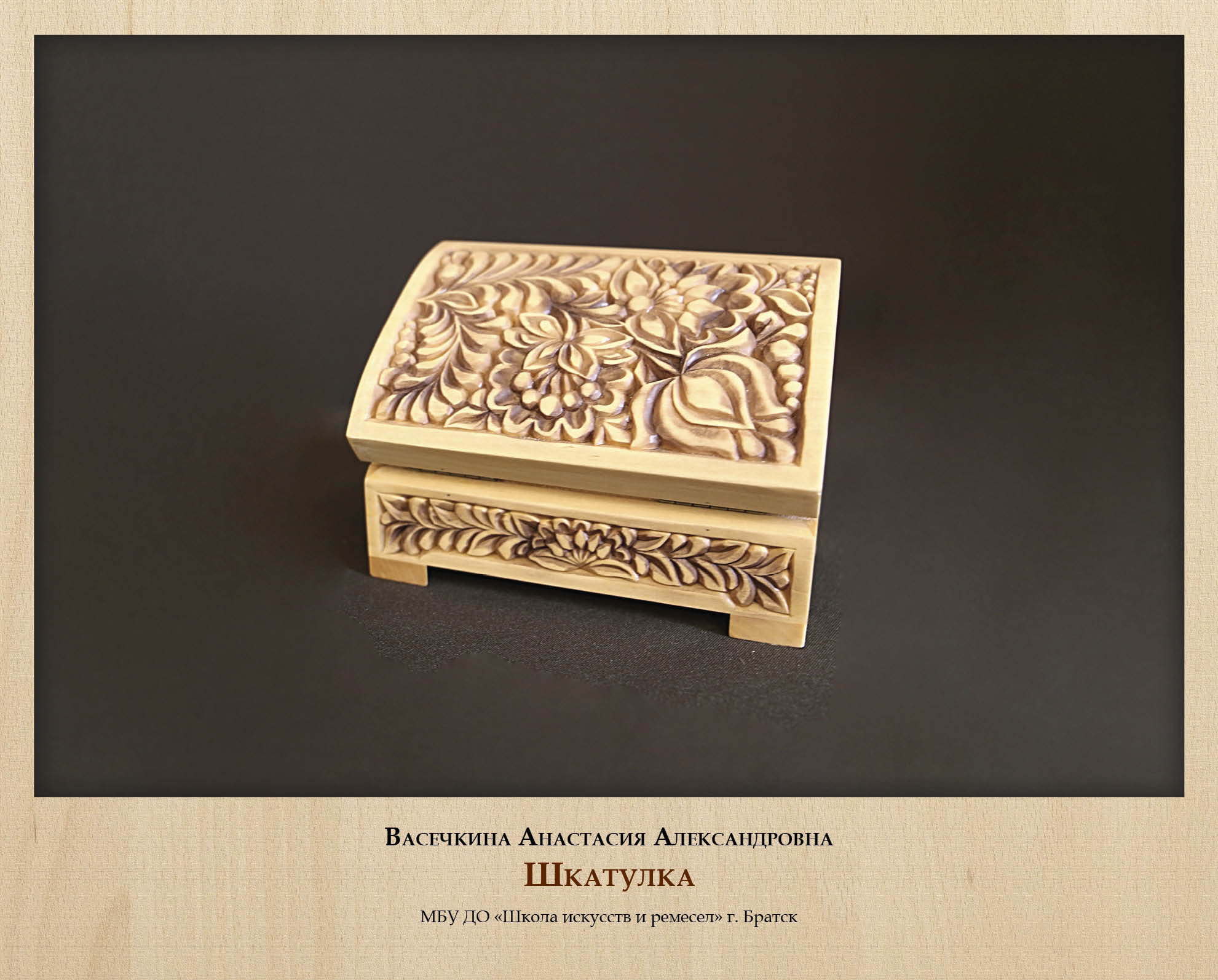 Художественная резьба по дереву, один из древнейших и наиболее распространенных видов ремесла, поскольку этот материал всегда широко использовался в быту. Резьба исторически применялась в домовом декоре, при украшении бытовой утвари и предметов мебели, для изготовления мелкой деревянной пластики, в особенности – игрушек. На основе художественной резьбы по дереву развился ряд промыслов на территории России: с XV-XVI веков – богородская резьба (деревянная игрушка), с конца XIX века – абрамцево-кудринская резьба (бытовые предметы) и другие. На русском Севере, в Поволжье, на Урале и в Сибири остались деревянные дома XVIII-XIX веков – наиболее яркие памятники архитектурной резьбы. Многие из этих традиций, как и само ремесло резьбы в целом, сохранились до наших дней. В Иркутской области наиболее яркие самобытные мастера художественной резьбы работают в городах Иркутск, Братск, Усть-Илимск. Именно их произведения стали основой выставки, представленной вашему вниманию.