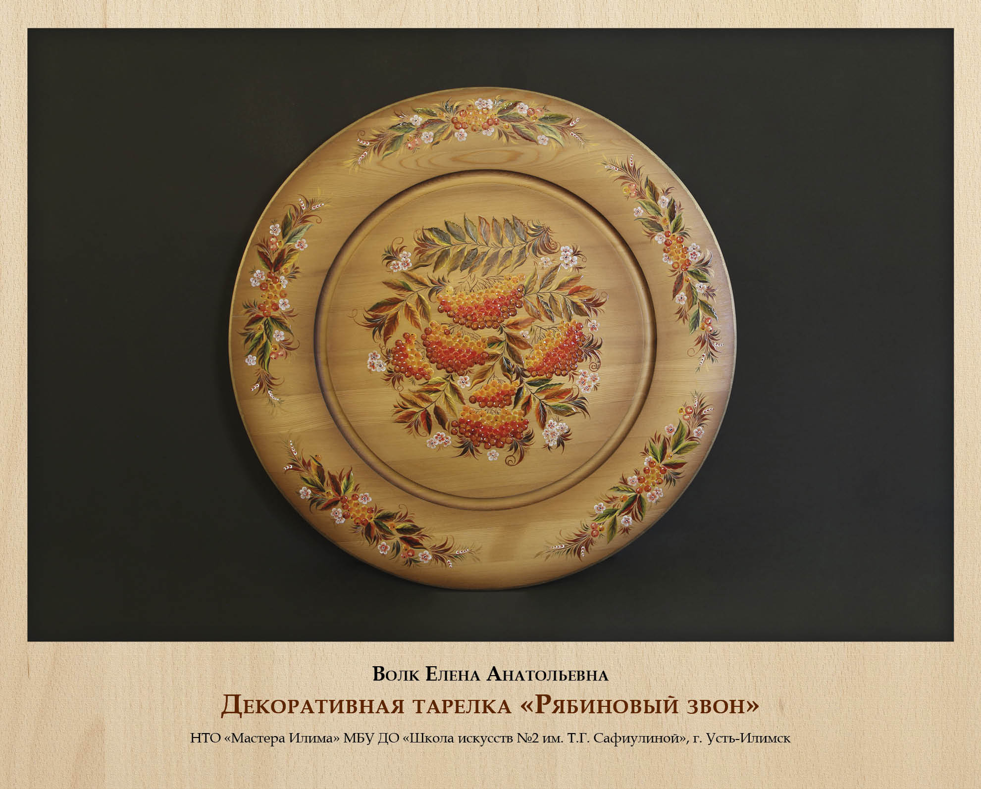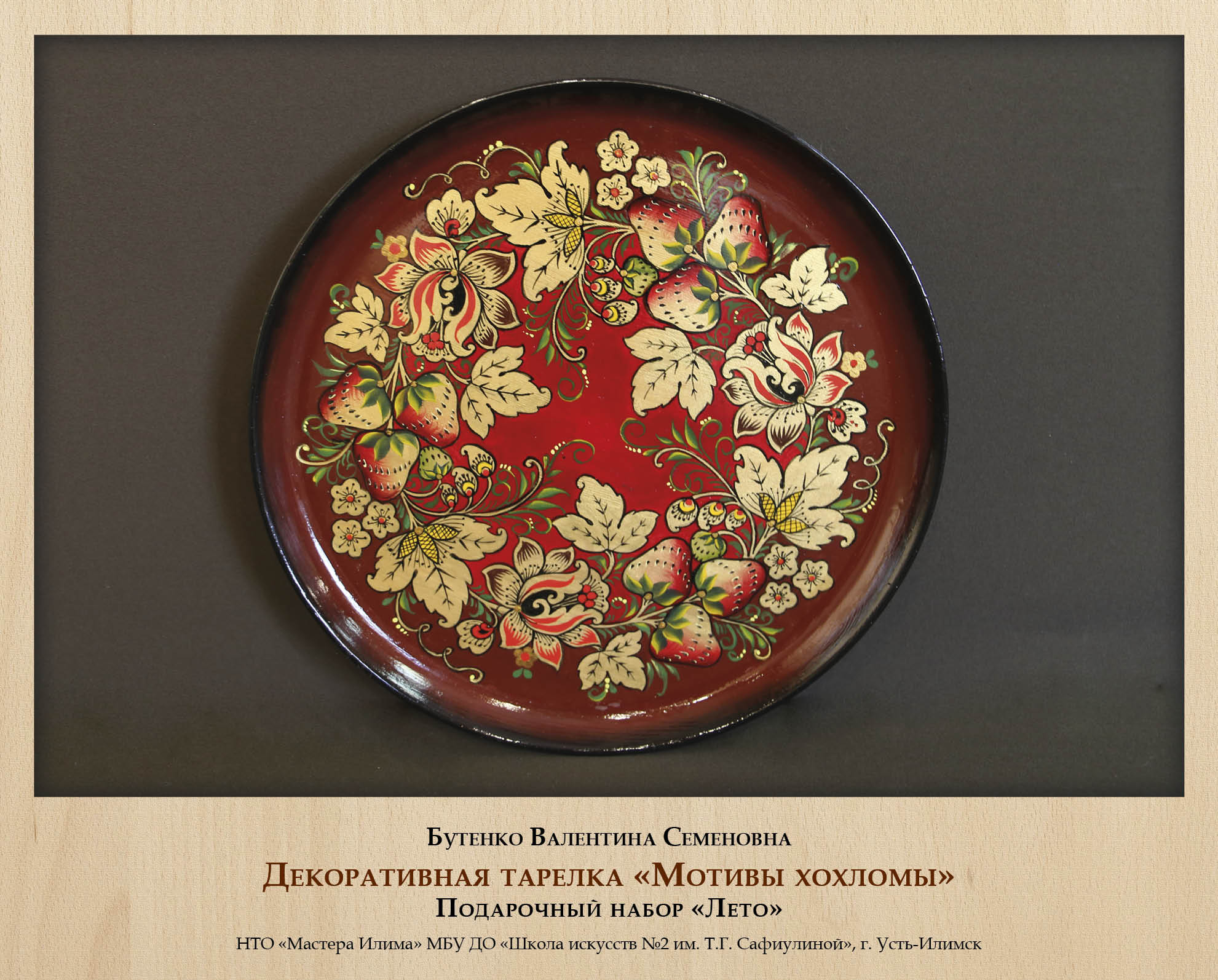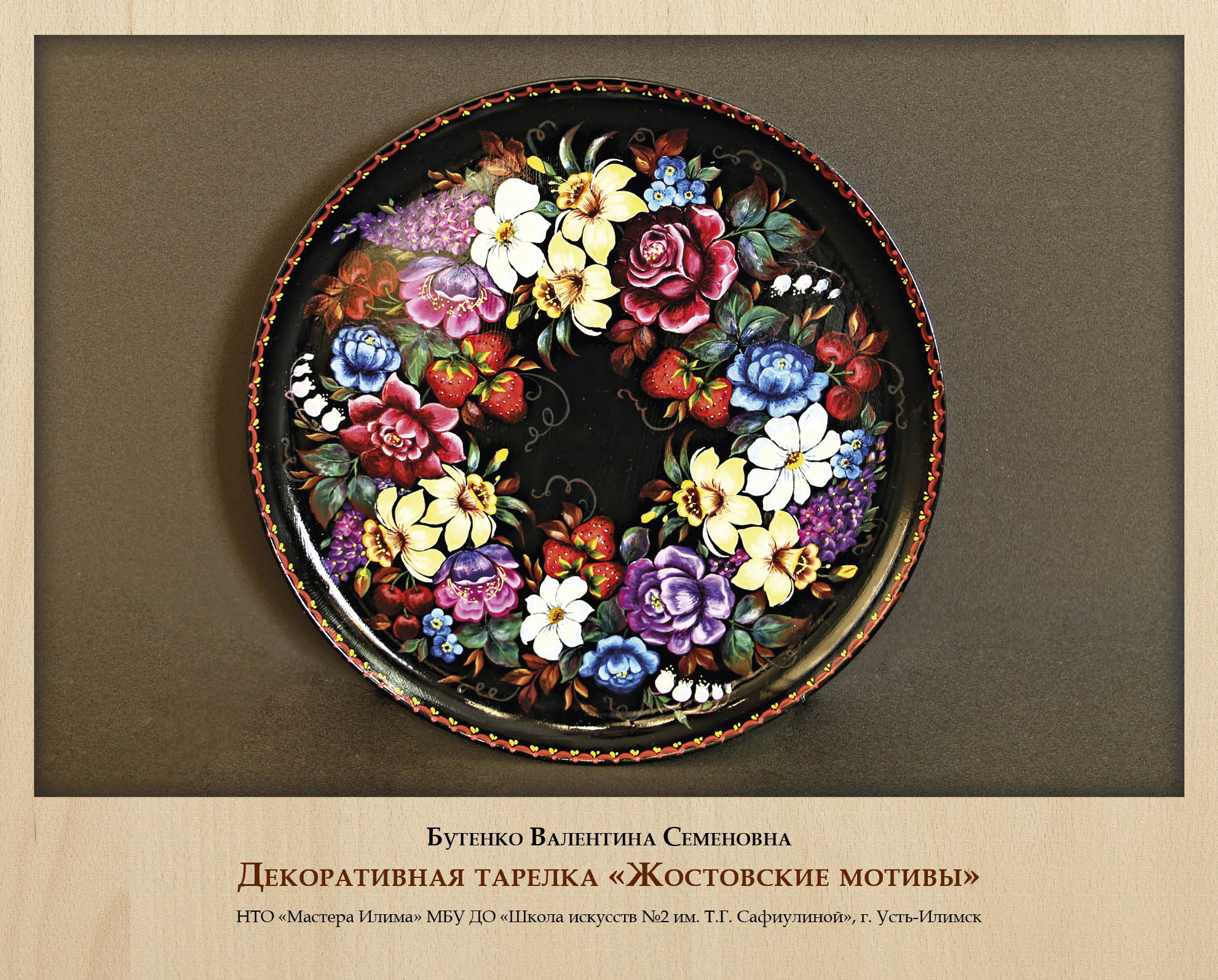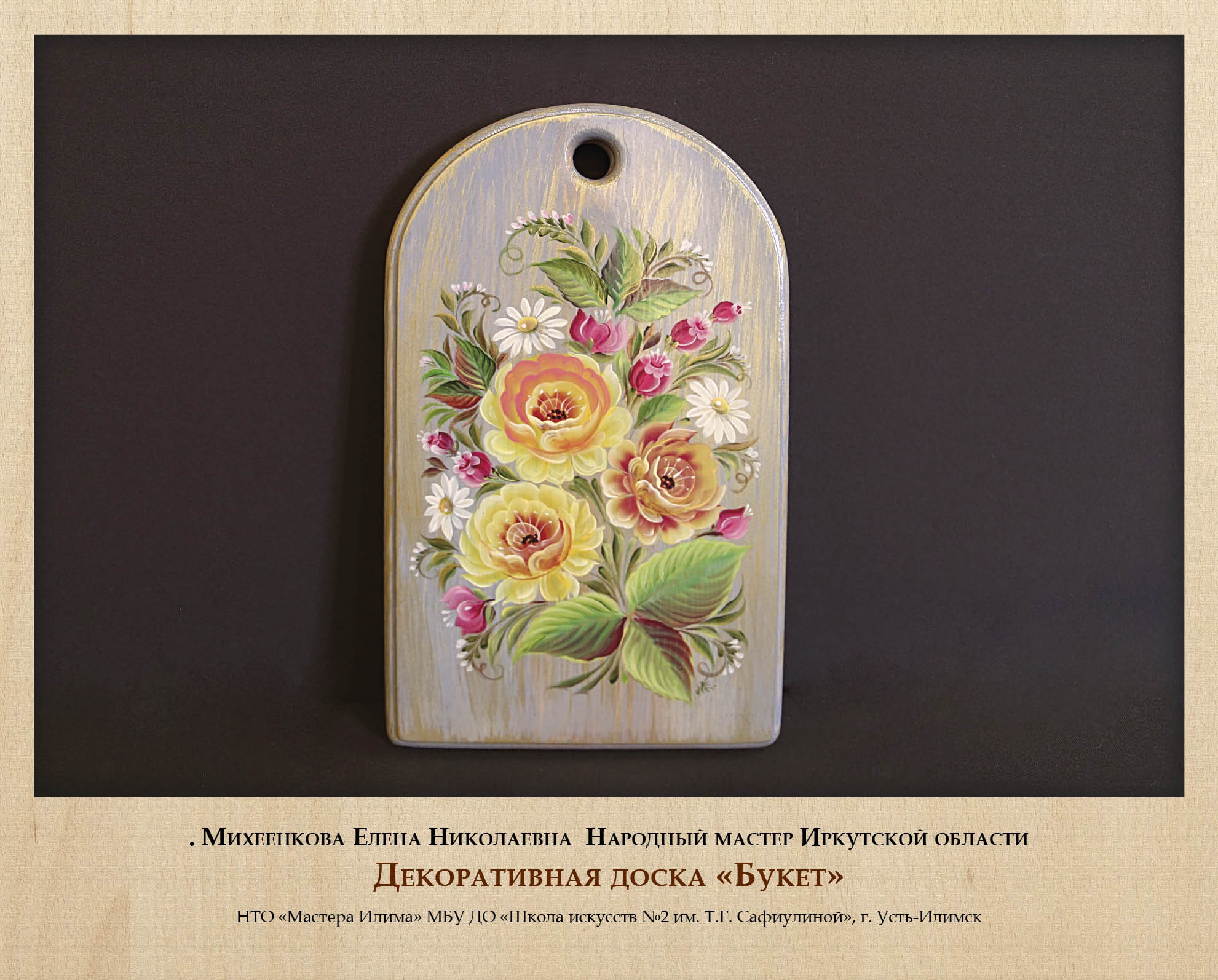 Традиционно многие виды деревянных изделий дополнительно оформлялись росписью, и роспись по дереву также стала самостоятельным ремеслом со своими локальными особенностями. Сильная школа росписи сложилась в г. Усть-Илимске, где мастера не только глубоко и вдумчиво изучают различные исторически известные виды росписи (жостовскую, хохломскую, мезенскую и другие), но и активно экспериментируют, адаптируют их к сибирской тематике и колориту, создают собственные авторские вариации. Выставку украсили работы Народных мастеров Иркутской области Е.Н. Михеенковой и Н.П. Королевой, а также В.С. Бутенко, Е.А. Волк, Н.Г. Зинченко.