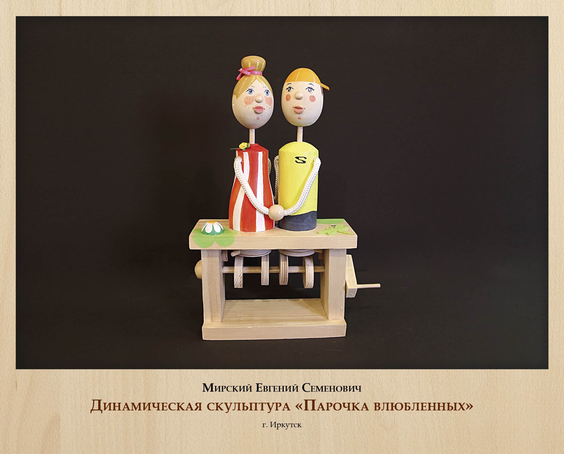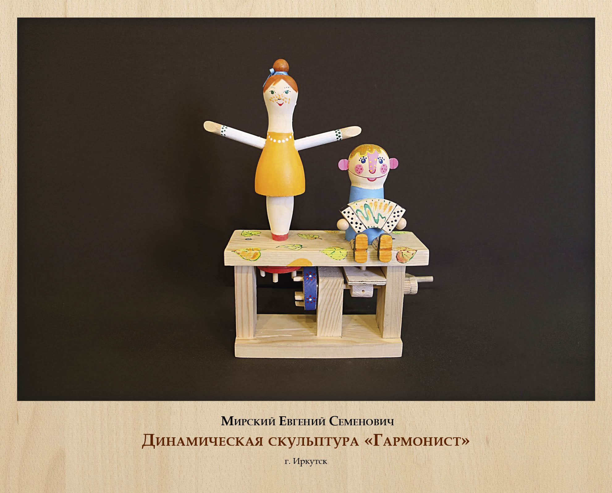 Наконец, особое место в художественной резьбе по дереву занимает подвижная игрушка. Незатейливые, вроде бы, механизмы из простых деревянных деталей производят впечатление чего-то живого, а яркая роспись добавляет игрушкам характер и индивидуальность. В Иркутске традиции деревянной игрушки творчески развивает и адаптирует к современности Е.С. Мирский.