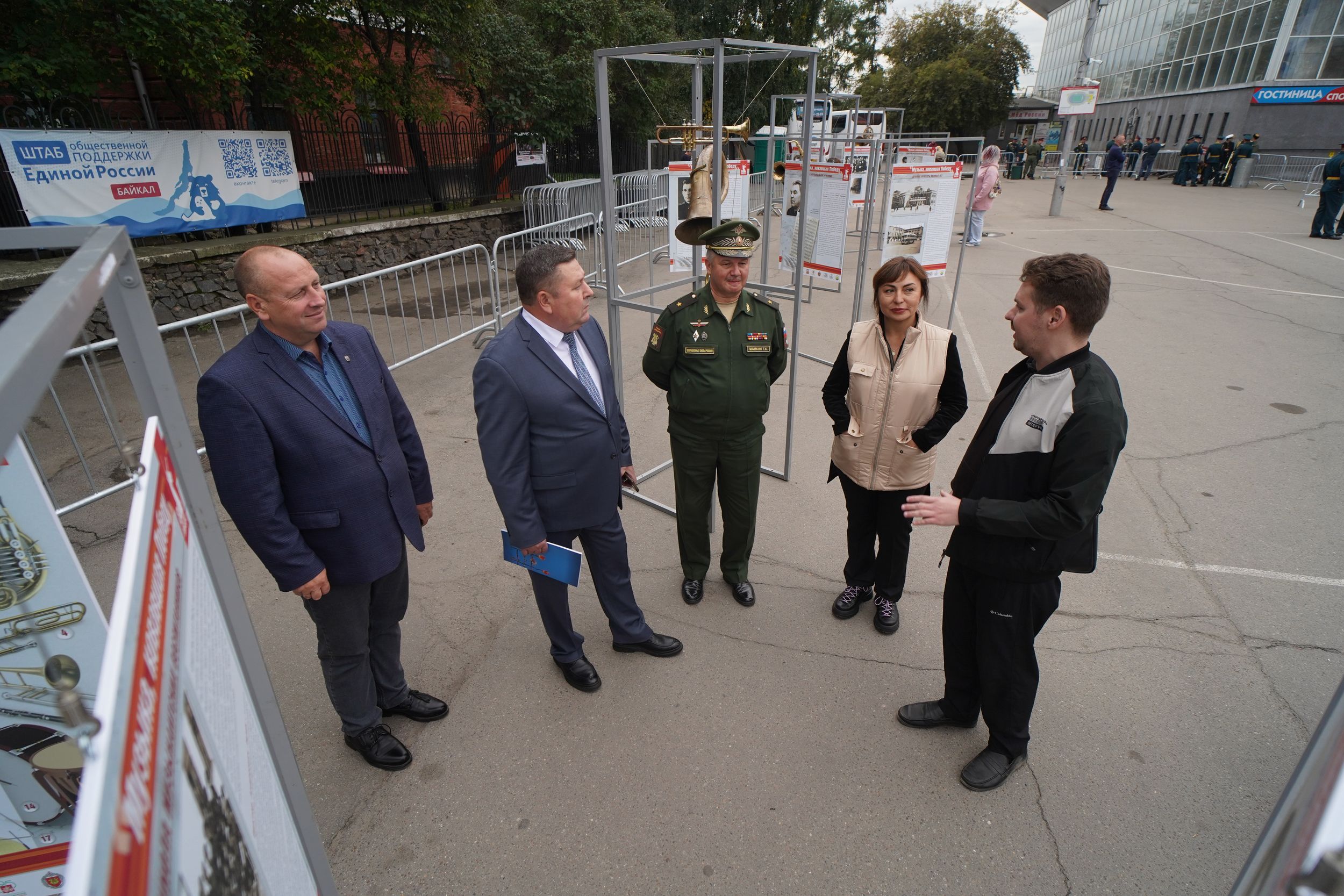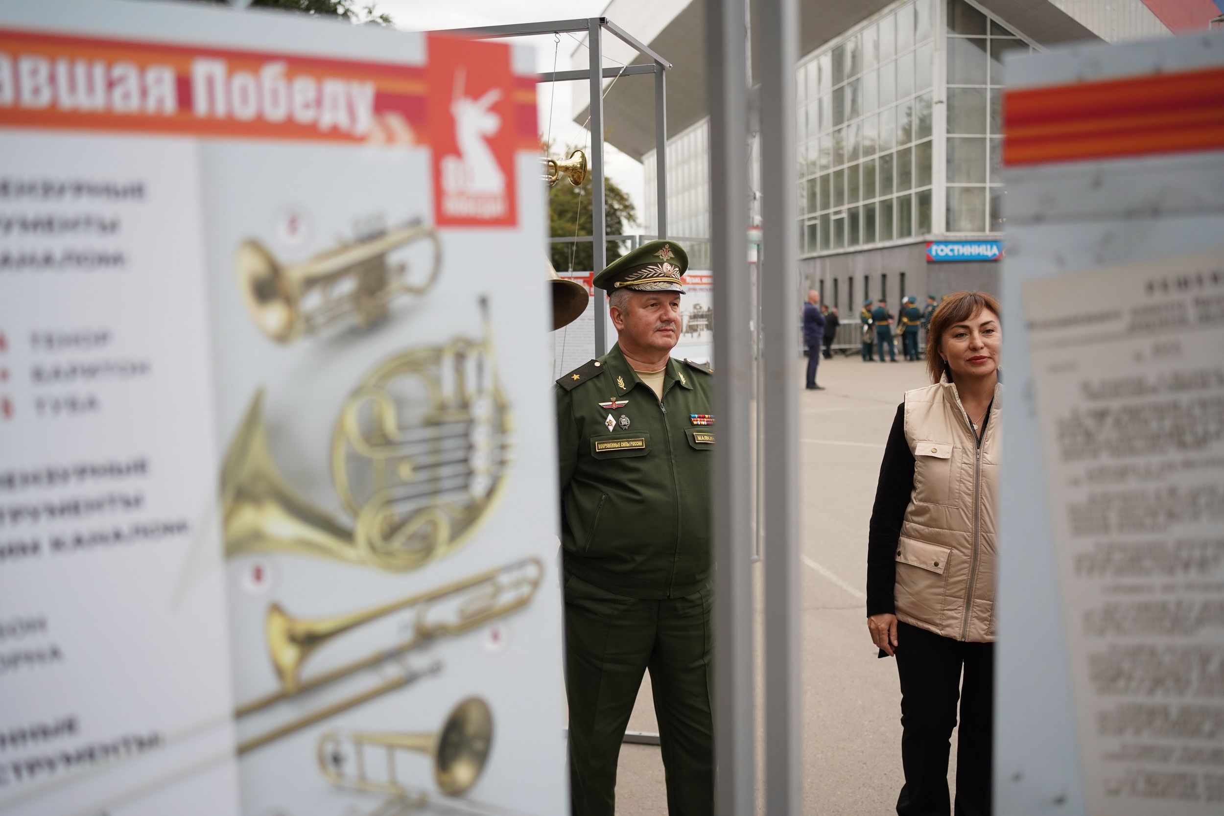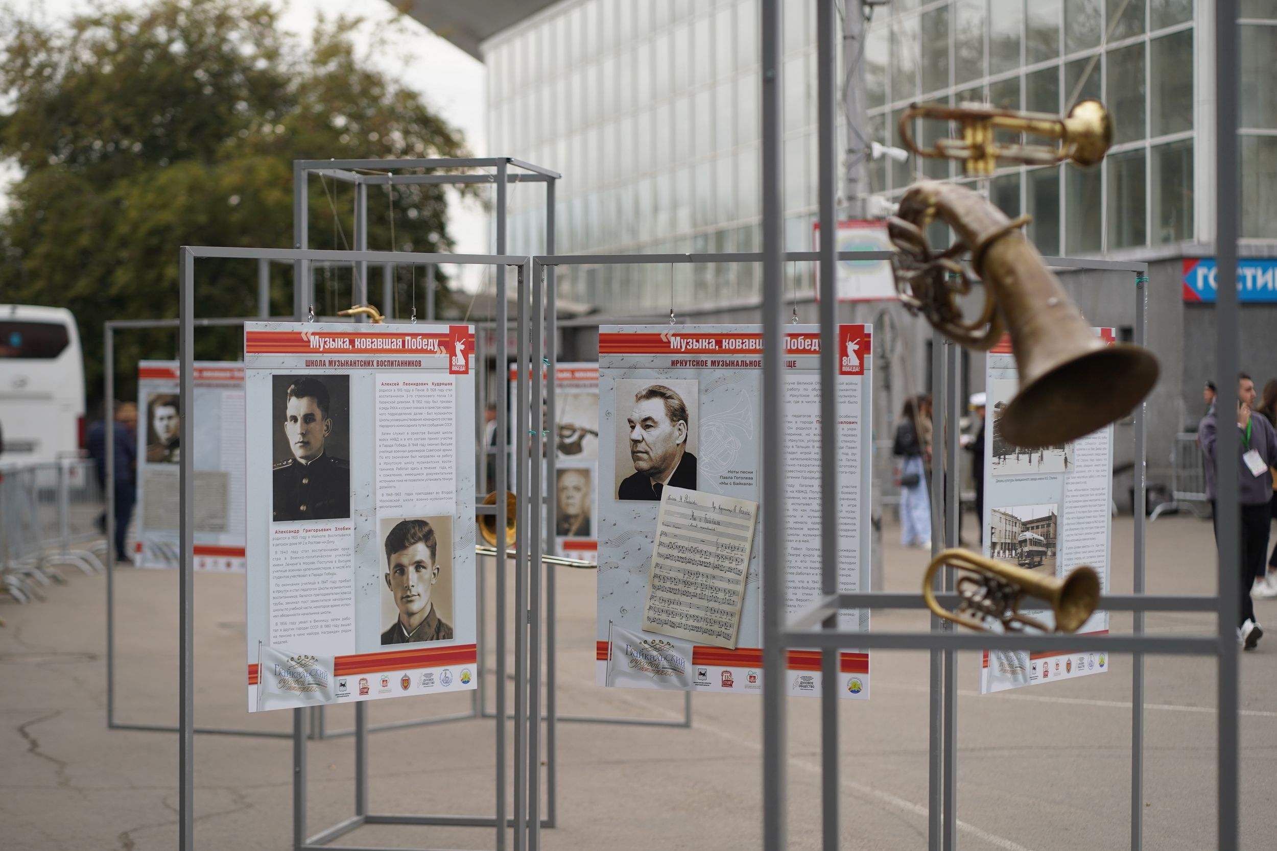 На завершающем гала-концерте рядом с концертной площадкой разместили планшетную выставку о вкладе фронтовых артистов-сибиряков в Победу в Великой Отечественной войне, а также материалы и ноты, которые представляют историю духовой музыки Иркутской области в то время. Её по проекту Иркутского областного Дома народного творчества составил кандидат исторических наук Иван Колокольников.