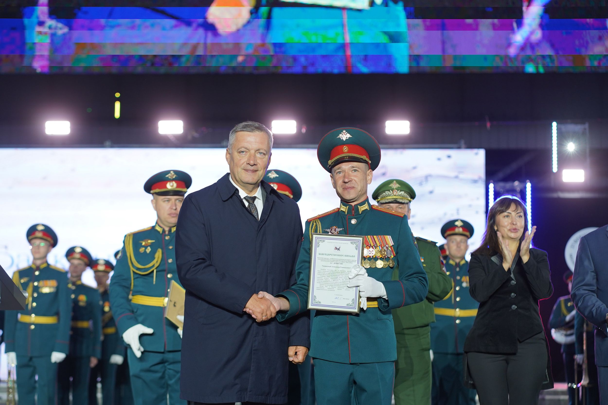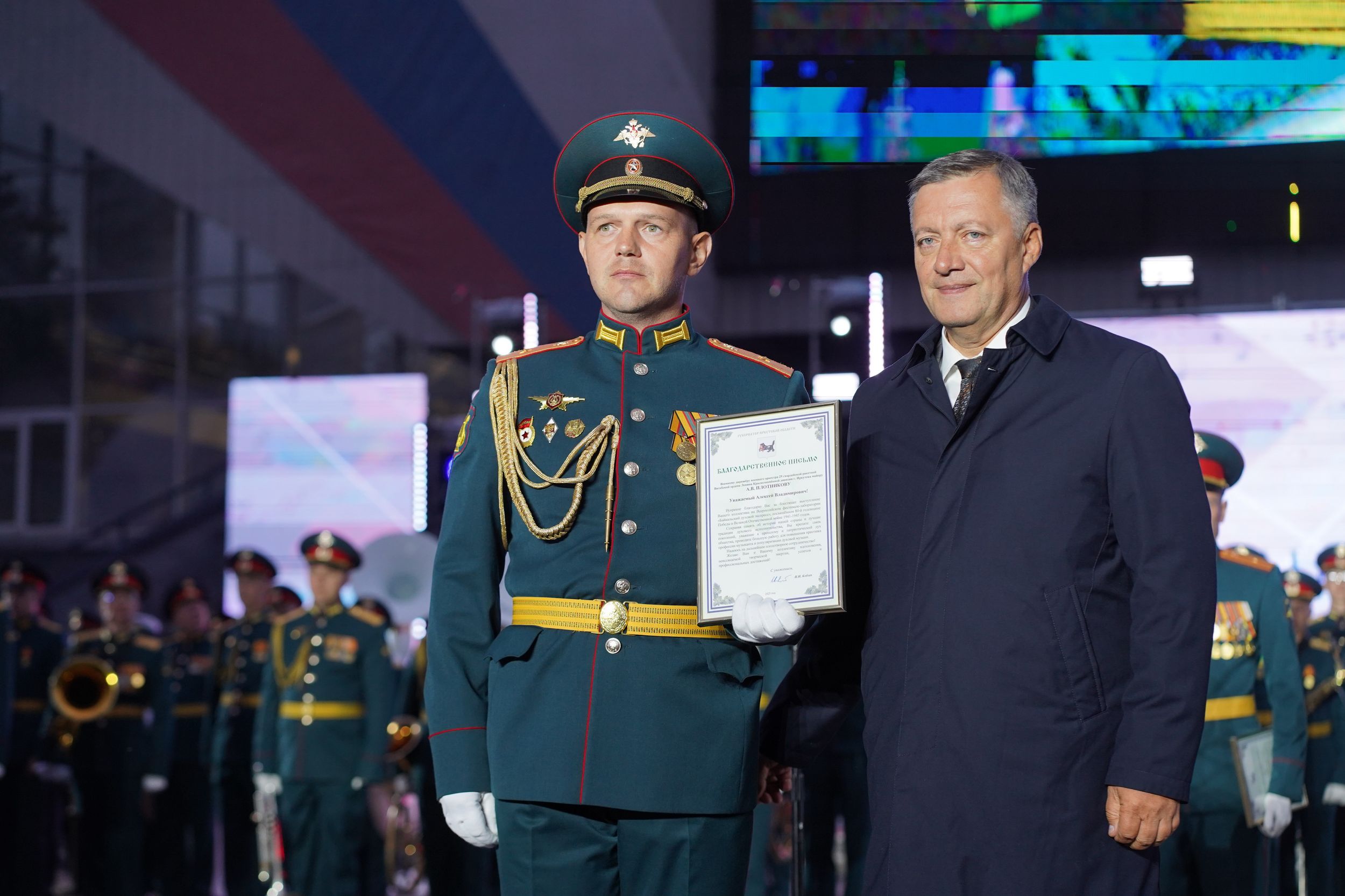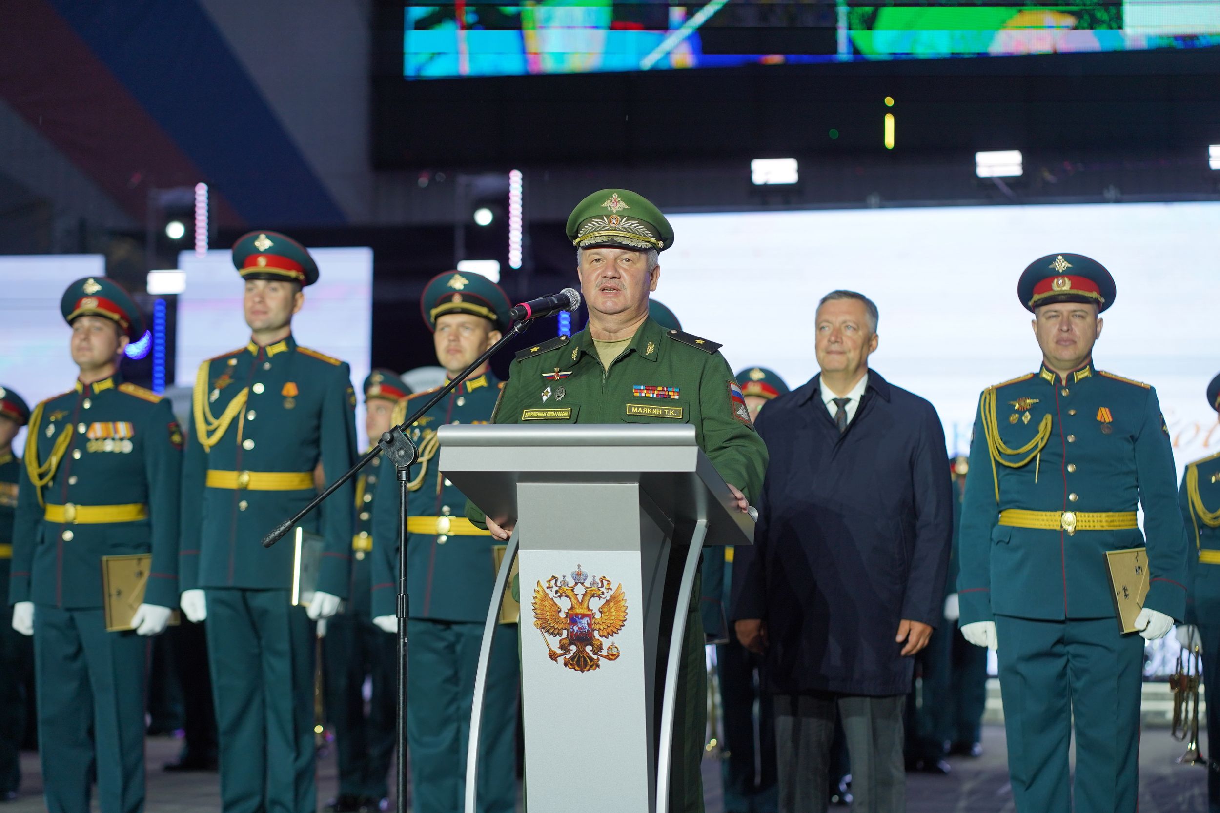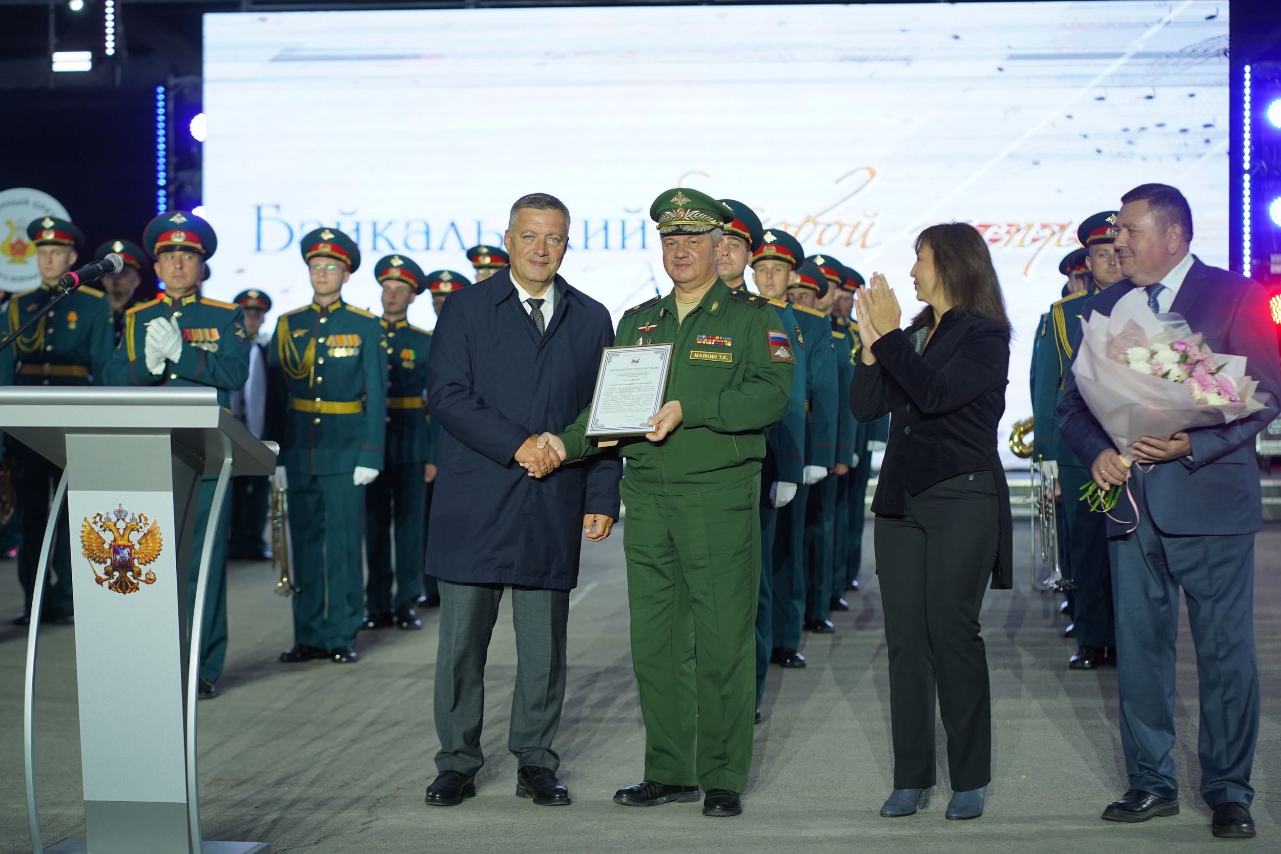 Генерал Тимофей Маякин произнёс слова благодарности зрителям фестиваля за тёплый приём музыкантов, поблагодарил организаторов события и руководство Иркутской области.