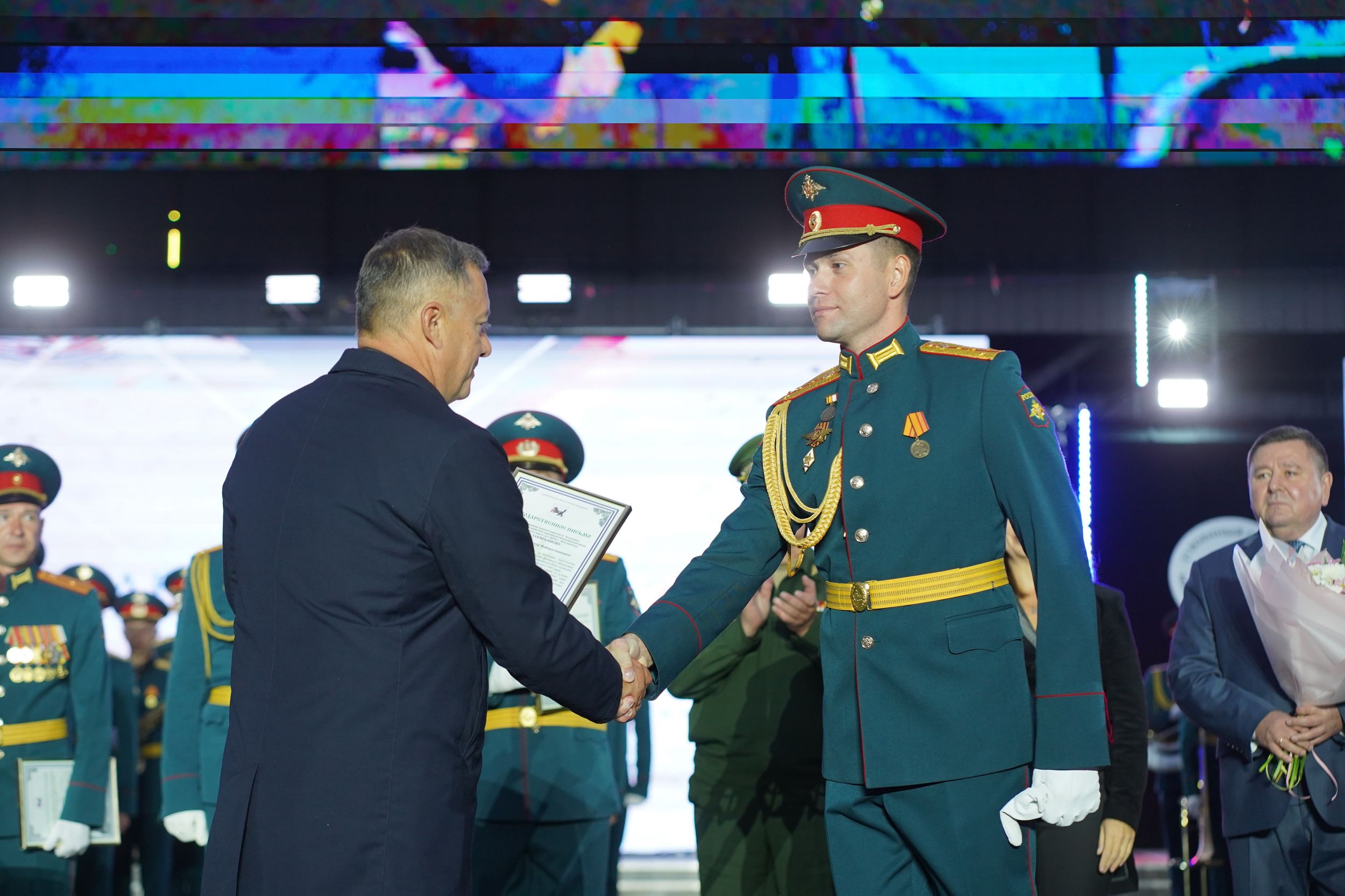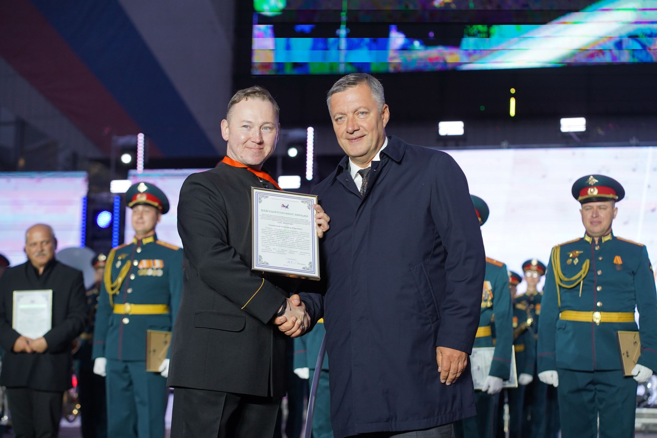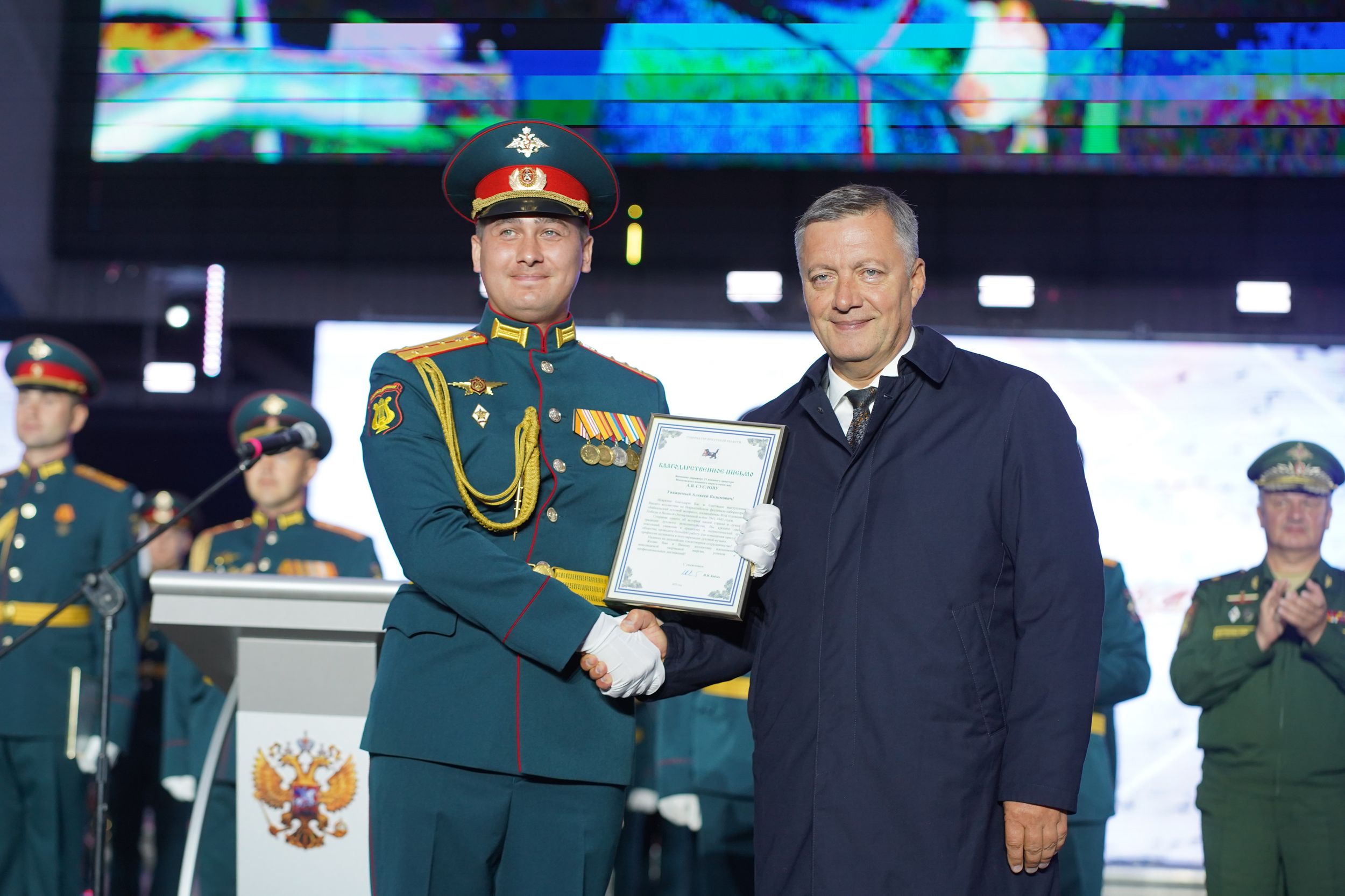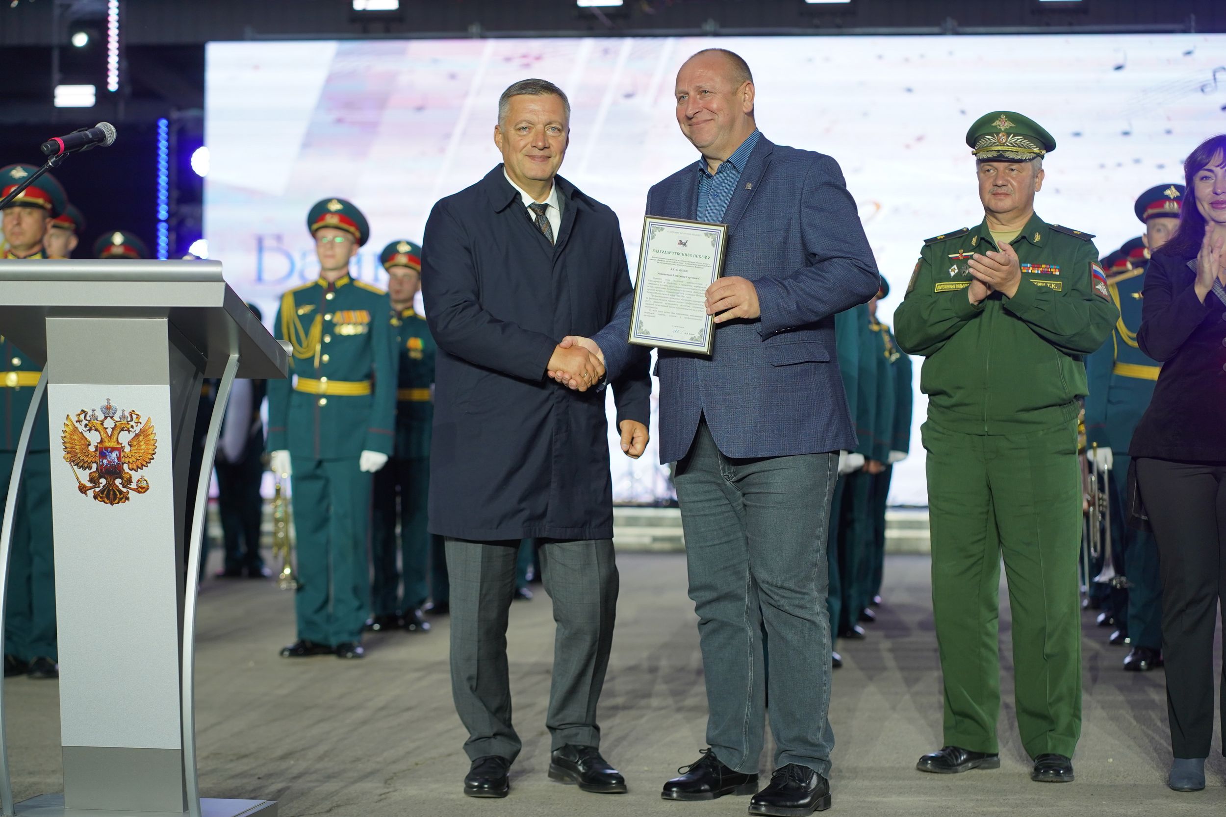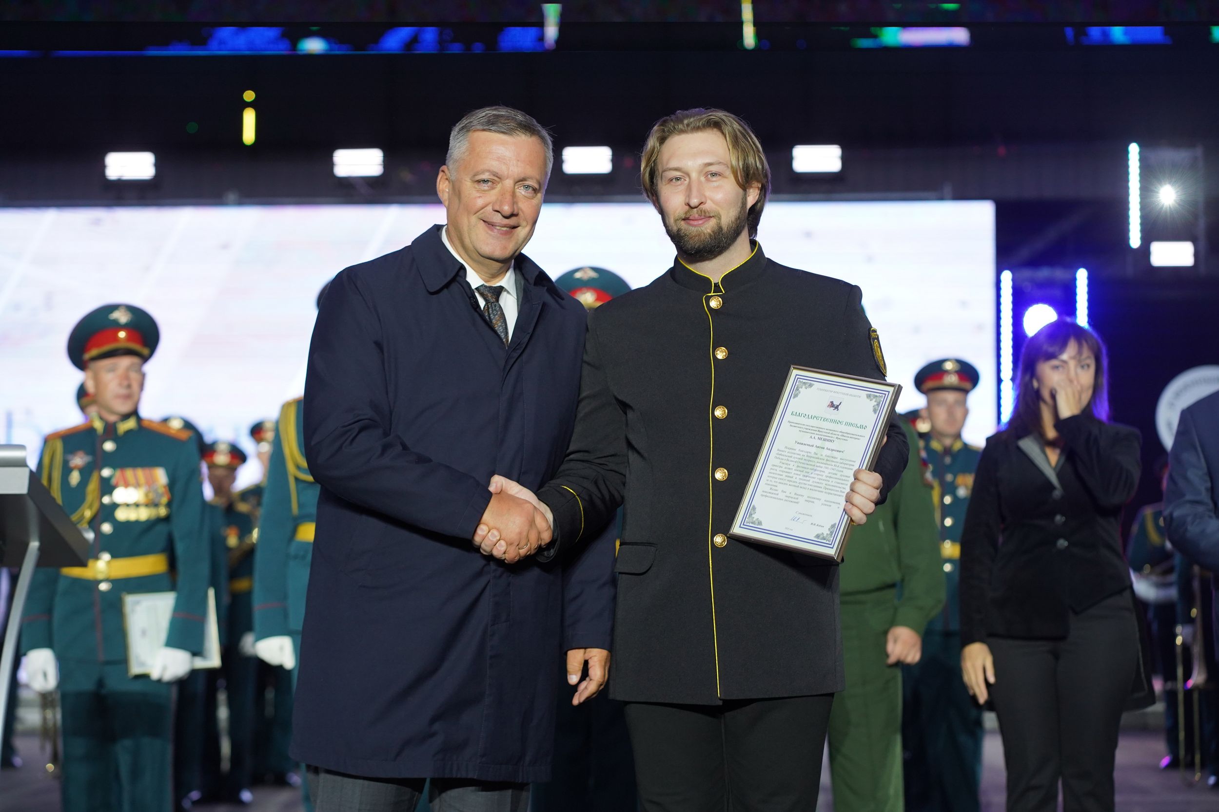 Генерал Тимофей Маякин произнёс слова благодарности зрителям фестиваля за тёплый приём музыкантов, поблагодарил организаторов события и руководство Иркутской области.