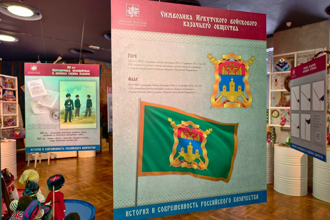 Выставка состояла из 12-ти двусторонних иллюстрированных планшетов с информацией о многообразии культурного и исторического наследия казачества Иркутской области.