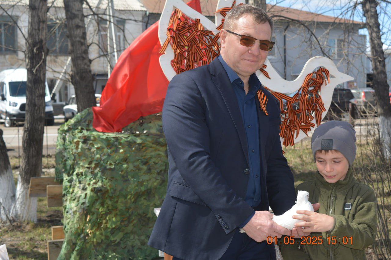 Волонтёрским движением «Луч добра» была организована акция «Георгиевская ленточка». Каждый мог подойти, ответить на вопросы об истории георгиевской ленточки, и повязать её на символ мира, свободы и надежды «Голубя».