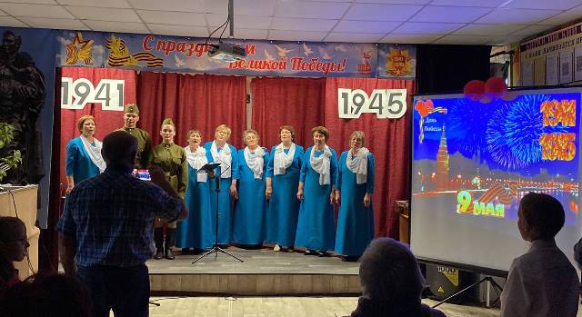 В завершении все участники концертной программы спели песню «День Победы». Зал подпевал.