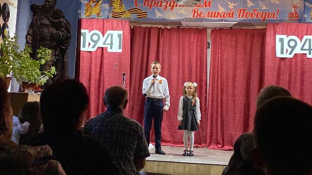 Белова Даша исполнила песни «Сад памяти» и «По вагонам» о погибших односельчанах очень душевно и проникновенно. Учащиеся младших классов прочитали стихи о войне.