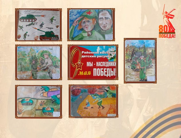 Более сорока любительских работ, отражающих события Великой Отечественной войны, было представлено на районной выставке детского рисунка, посвященной 80-летию Великой Победы в Межпоселенческом районном Доме культуры «Юбилейный». На выставке были представлены творческие работы детей всех возрастных групп из г. Тайшета и г. Бирюсинска, Нижней Заимки и Старого Акульшета. Более двадцати работ представили воспитанники специальной (коррекционной) школы-интерната № 19 г. Тайшета.