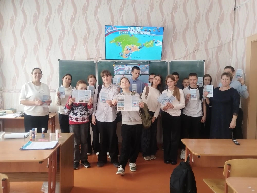 Тринадцатого марта 2026 года специалист Соляновского Дома культуры Тайшетского округа, библиотекарь сельской библиотеки и советник директора по воспитанию организовали тематический час для учащихся 5 – 11 классов, который стал настоящим погружением в историю, культуру и природные красоты Крыма.