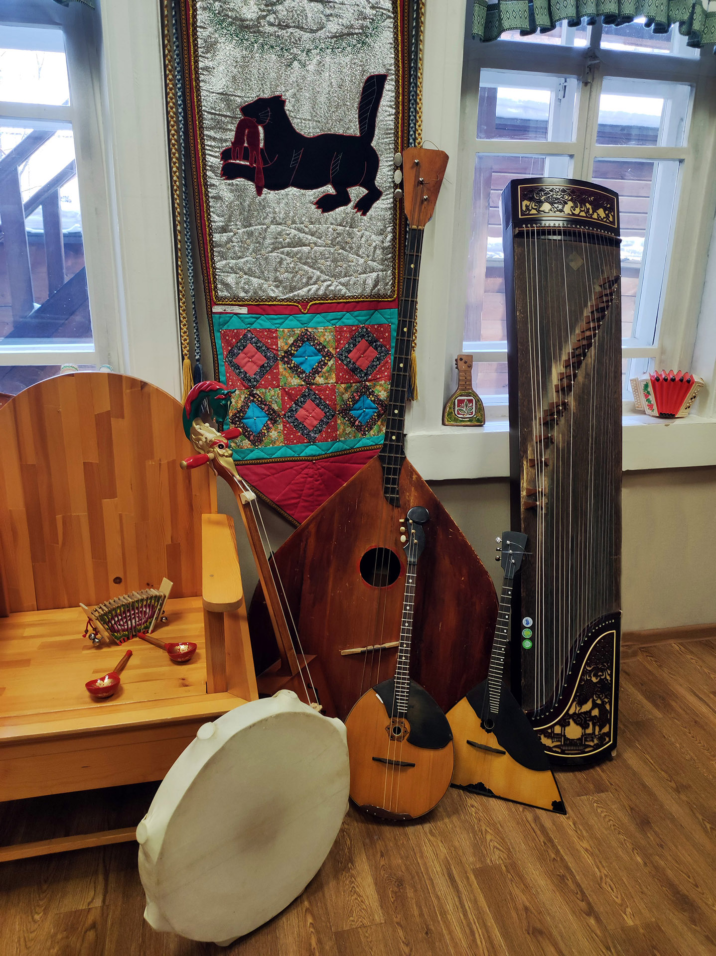 Инструменты для выставки предоставлены Иркутским областным краеведческим музеем, Иркутской областной филармонией, Иркутским областным Домом народного творчества, Государственным ансамблем песни и танца «Степные напевы», а также частными лицами.