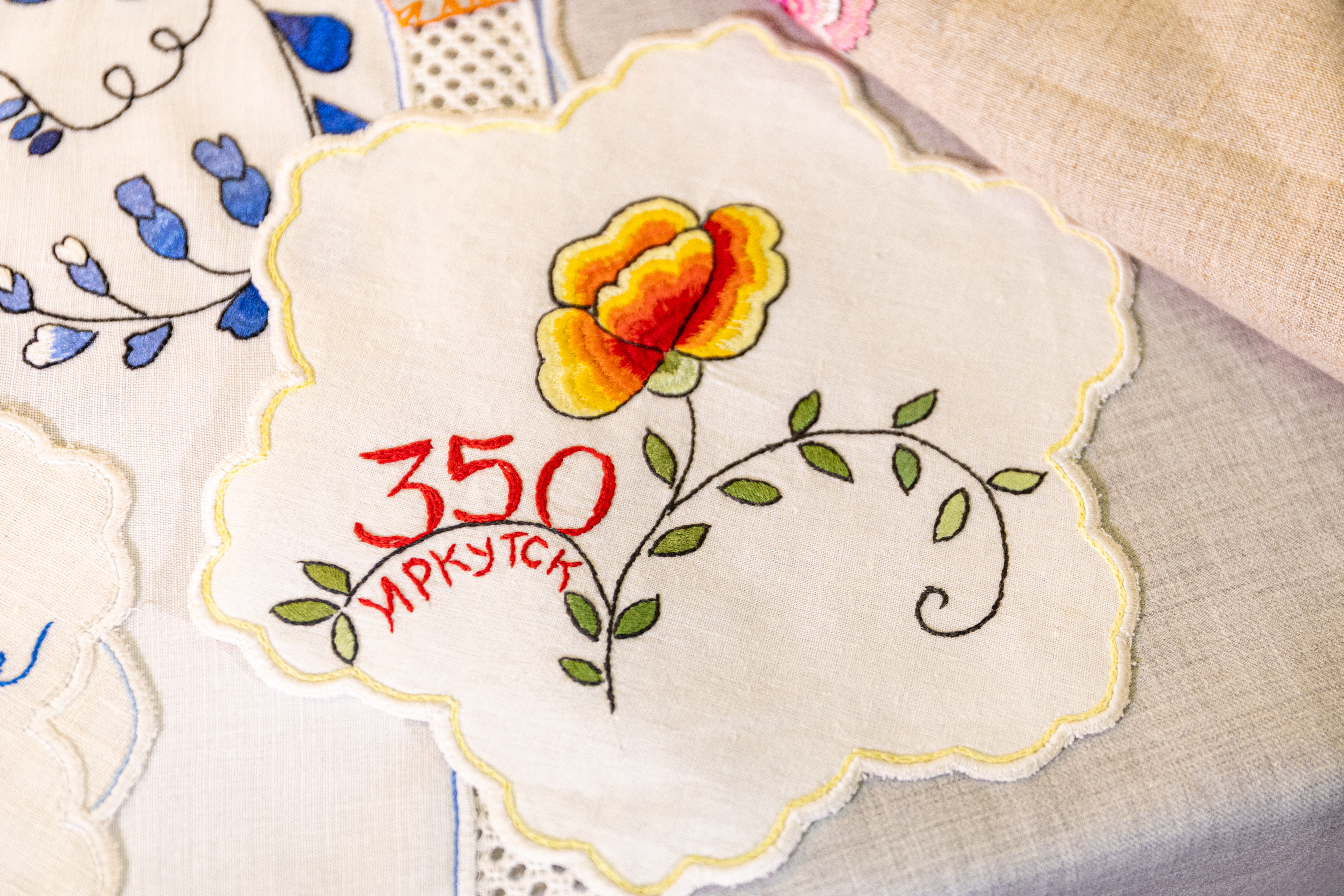 Иркутская гладь – технология, разработанная в 1990-х гг. Марией Алексеевной Азеевой, народным мастером Иркутской области. Технология основана на комбинации полтавской глади, представляющей собой полихромную вышивку с четким разделением тонов, и русского шва, предполагающего обшивку каждого элемента стебельчатым швом черного цвета, что является объединяющим для всех фрагментов композиции. В отличие от полтавской глади, в иркутской глади тона вышивки накладываются один на другой, строго по линии пришива, за счет чего рельеф вышивки получает характерное утолщение и становится волнообразным. Иркутская гладь в основном используется для декора бытового текстиля.