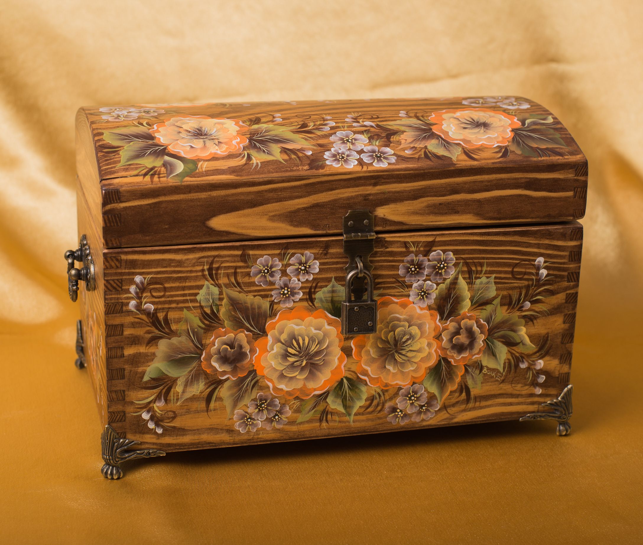 Шкатулка-швейная машинка «Цветы Сибири – жарки». Е. А. Волк