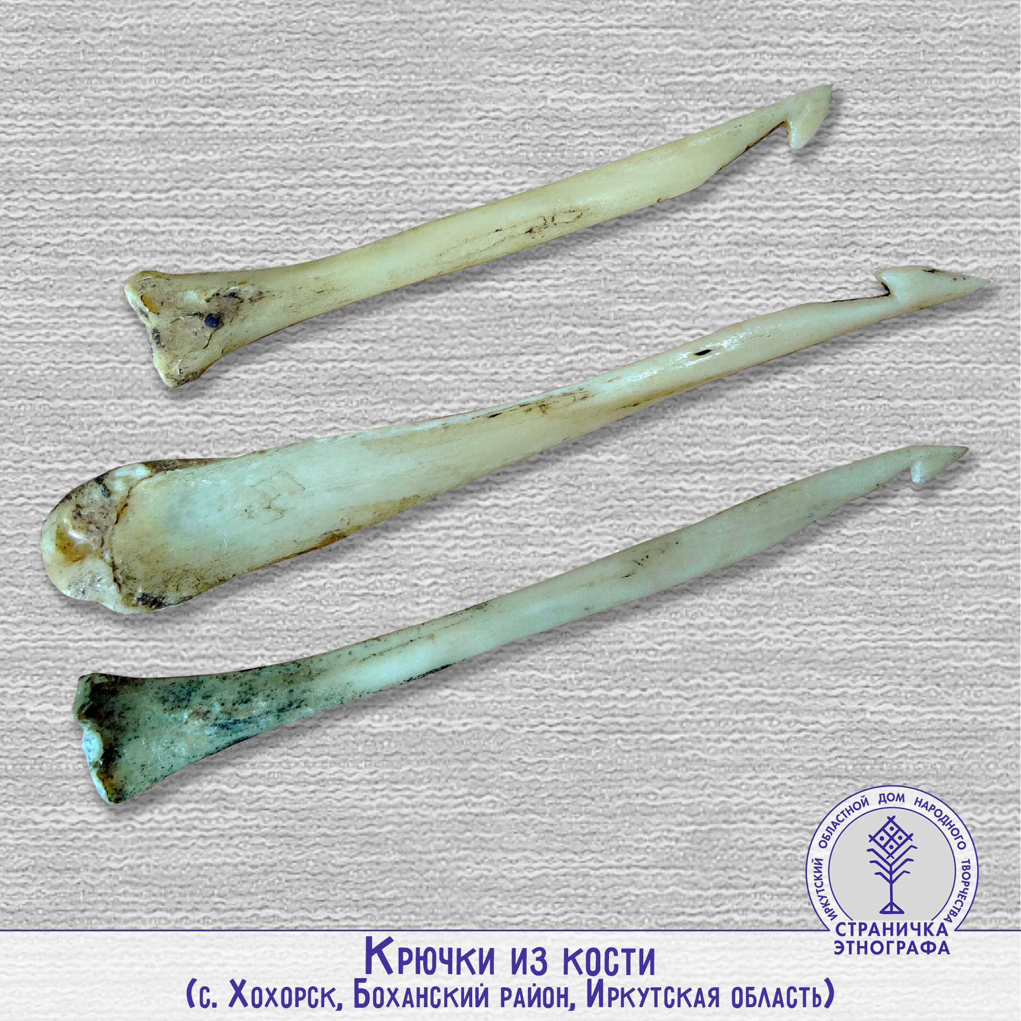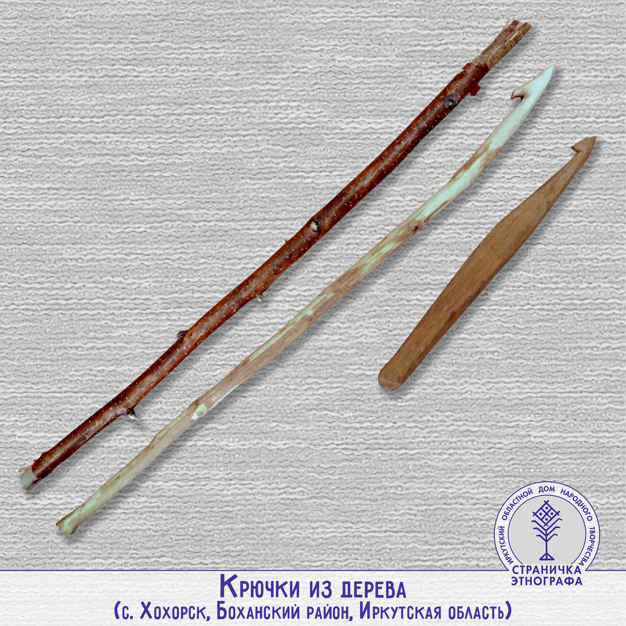 Крючок для вязания изделий из толстой пряжи традиционно изготавливали в домашних условиях из кости, дерева или металла. Костяной – из берцовой кости коровы, свиньи, барана или козы. Деревянный – из березы, сосны, лиственницы или камыша. Металлический – из ручки алюминиевой ложки или вилки, из гвоздя и металлической проволоки. Встречается информация и о пластмассовых крючках, их делали из зубных щеток.