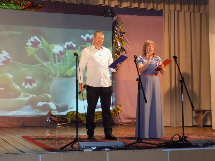 Украшением праздника послужили наши яркие и находчивые ведущие в лице Александра Бухарова и Лидии Харковец. В завершении нашего праздника в исполнении Андрея Кулакова была подарена песня «Дарите женщинам цветы».