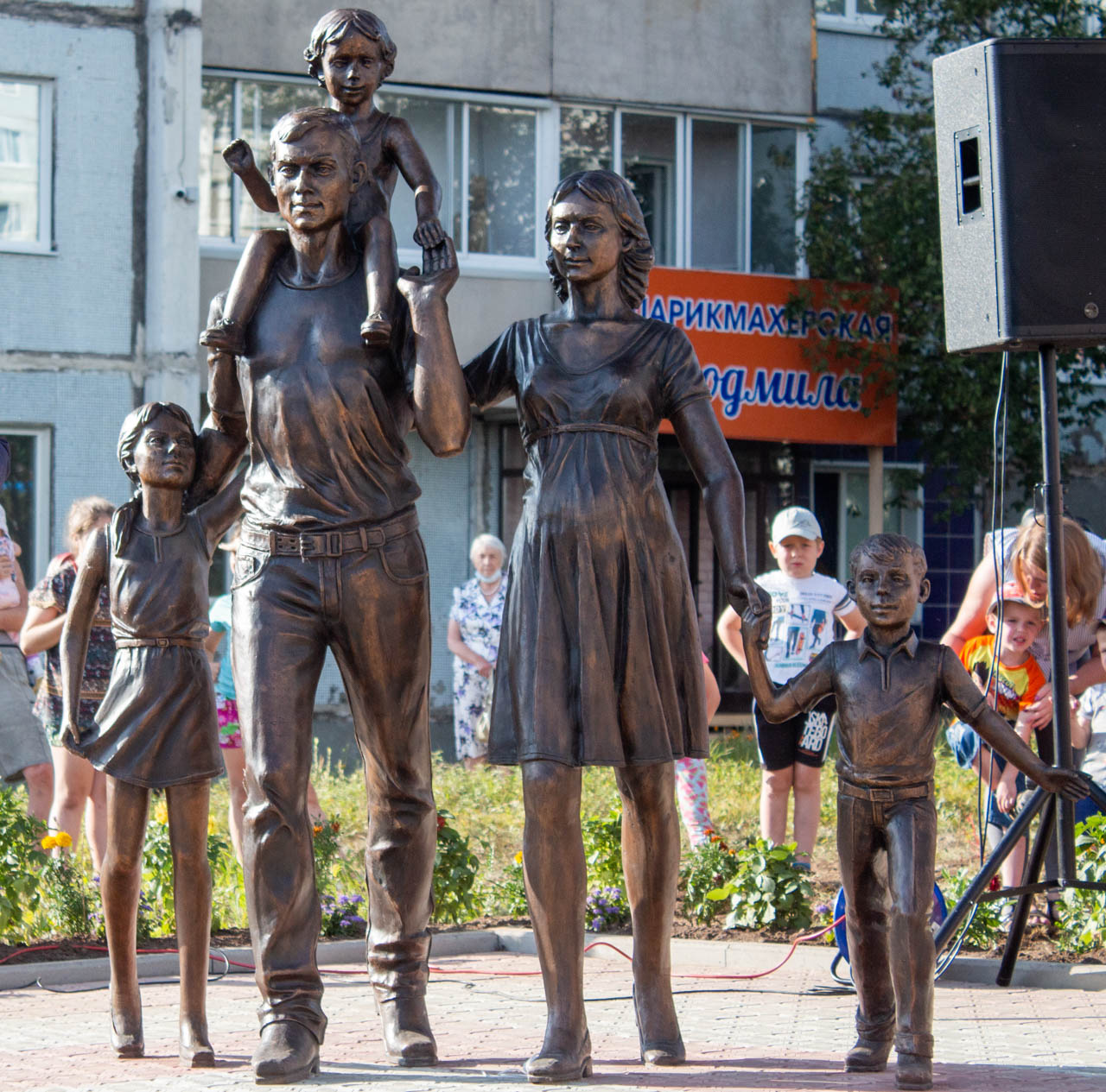 Девятнадцатого августа в Усть-Илимске рядом с Дворцом культуры «Дружба» прошло торжественное и долгожданное открытие скульптурной композиции «Семья». Этот подарок меценаты Людмила Губарева и её сын Алексей преподнесли горожанам по инициативе заместителя мэра Оксаны Янковской.