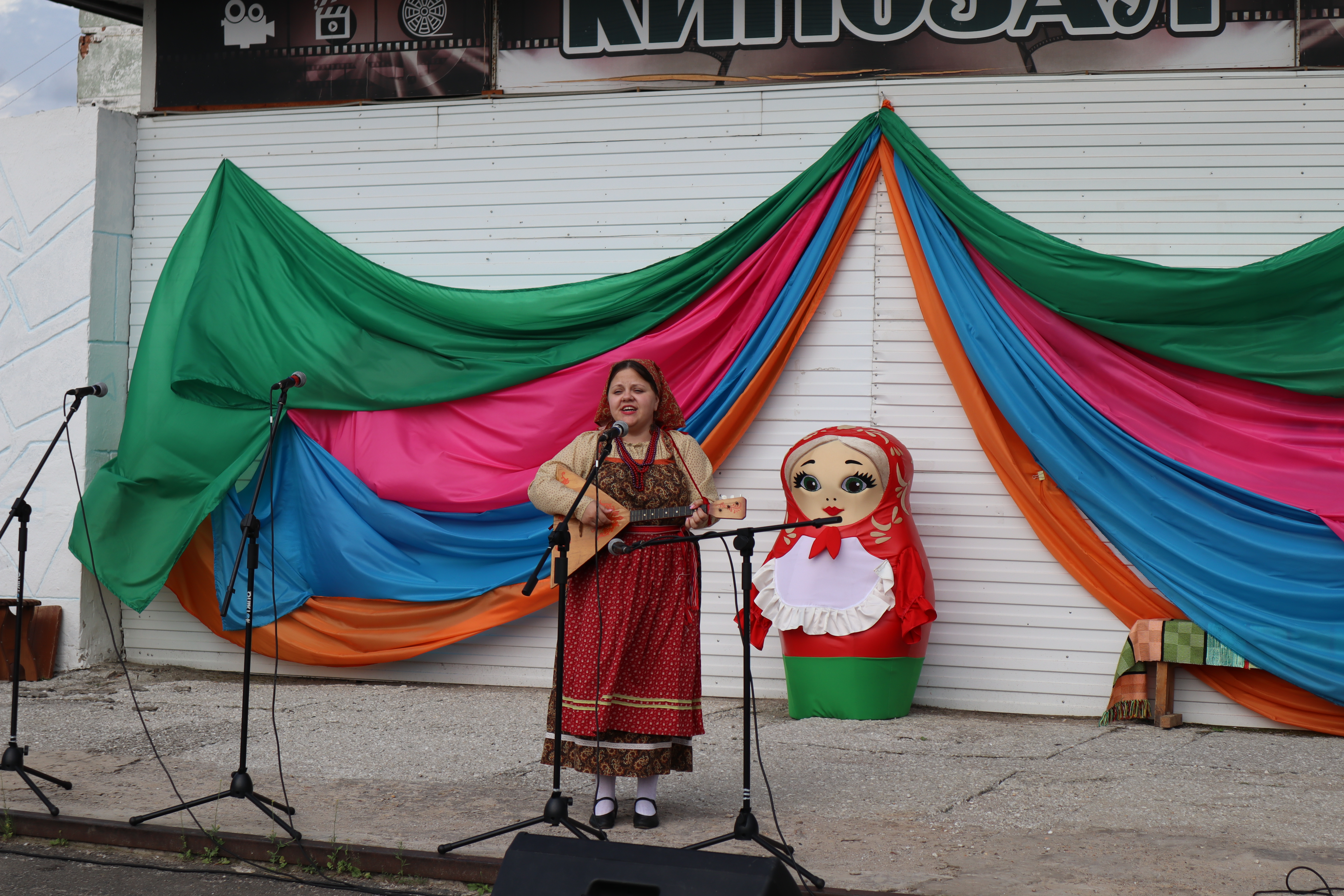 Концертная программа состоялась на открытом воздухе. Фасад здания оформили разноцветными тканями, в центре установили куклу-матрешку, а по площади на протяжении всего мероприятия ходила ростовая кукла Скоморох. Ведущая рассказала зрителям о жизни и традициях русского народа, об их песенном и танцевальном творчестве, о ремеслах. Рассказ сопровождался концертными номерами. Первой вышла на импровизированную сцену Виктория Нафикова (преподаватель детской школы искусств г. Бирюсинска) в костюме народов Сибири с русским народным инструментом балалайкой и исполнила «Матаню». Продолжили концерт юные баянисты из детской школы искусств (руководитель Людмила Шваб). Первоклассники исполнили попурри из народных мелодий.