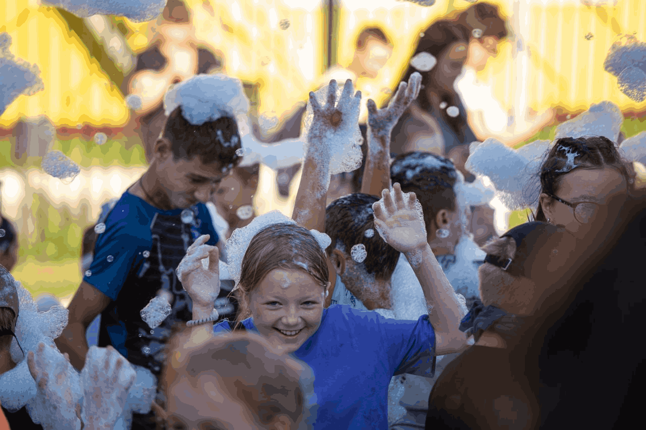 Праздник начался с весёлых развлечений для детей. Игровая программа от специалистов Районного дома культуры, игровые площадки и пенная вечеринка вызвали у детей бурю восторга, смеха и радости.