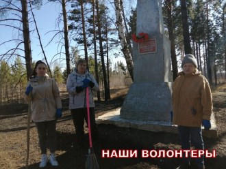 19 апреля 2022 года волонтеры Центра культуры и кино «Надежда» г. Бирюсинска Тайшетского района провели акцию по уборке территории возле памятника партизанам Шиткинского фронта, павшим в боях за деревню Бирюсу в годы гражданской войны.